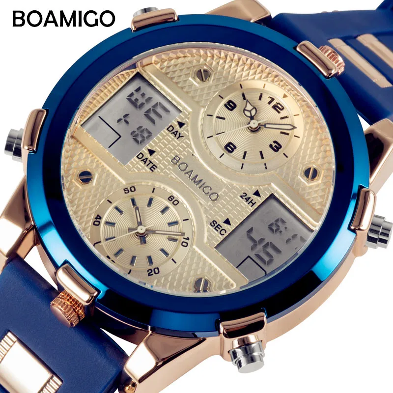 Мужские часы BOAMIGO, люксовый бренд, мужские спортивные часы, модные кварцевые светодиодный цифровые часы 3, синие военные часы, relogio masculino