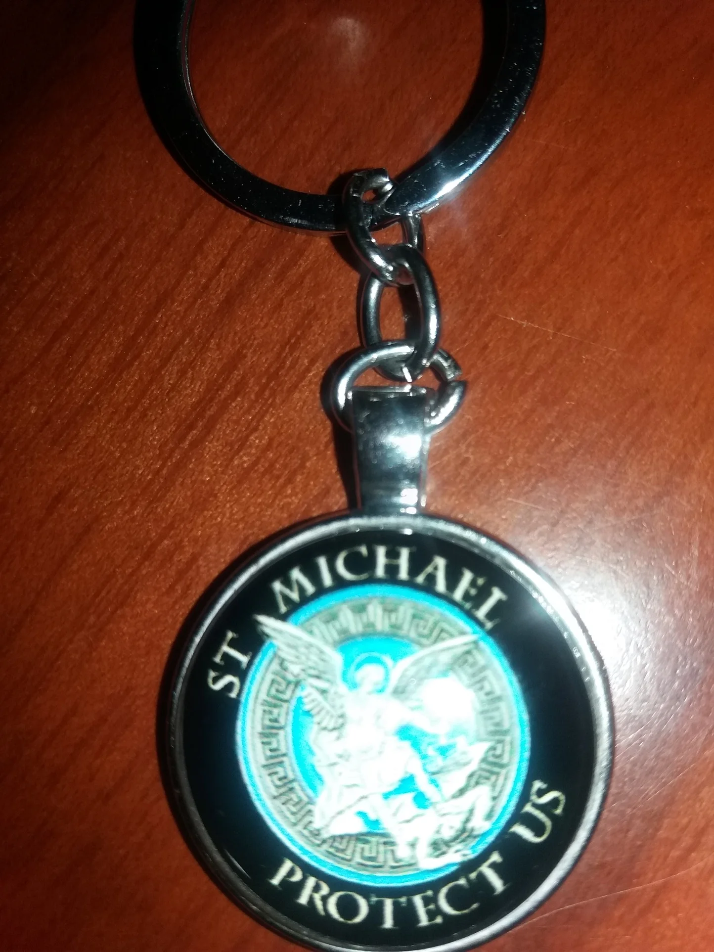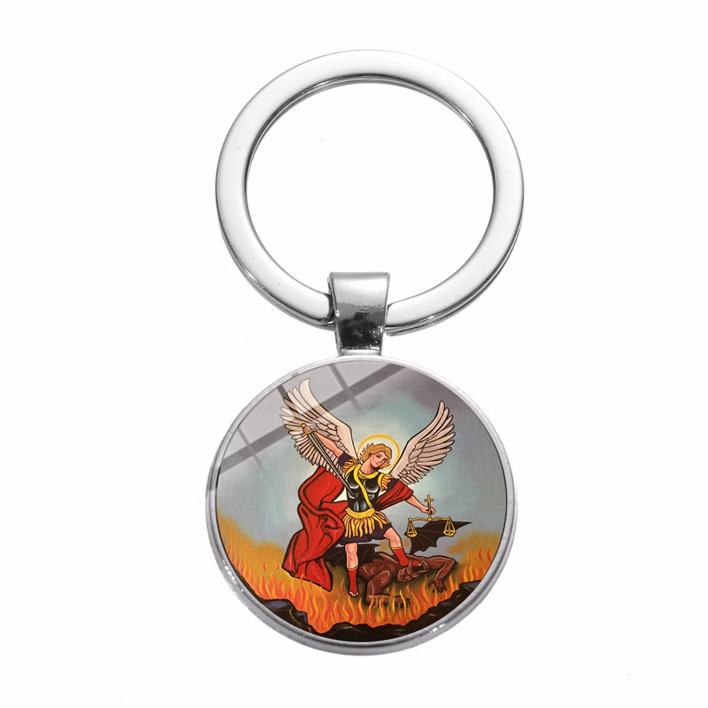 Азиатских Винтаж Архангел St. Майкл брелок защитить меня Saint щит православная Стекло Купол подвеска, амулет цепочка для ключей брелок-сувенир