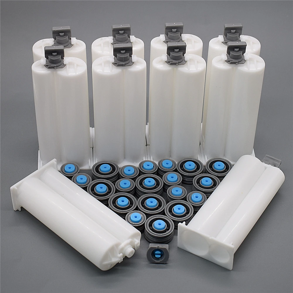 10 шт., картридж 50 мл, 1:2, пустой двухцилиндровый смеситель AB, трубка с уплотнительными поршнями, набор для 1:2, дозатор клея, 50 мл, клеевой пистолет AB