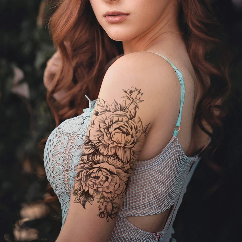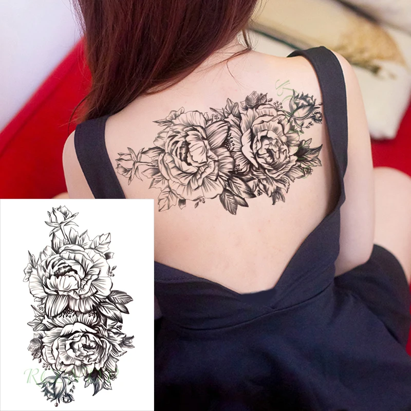 Водонепроницаемая Временная тату-наклейка с розовым цветком, черные татуировки на ногах, на спине, тату, флэш-тату, поддельные татуировки для девушек, мужчин и женщин