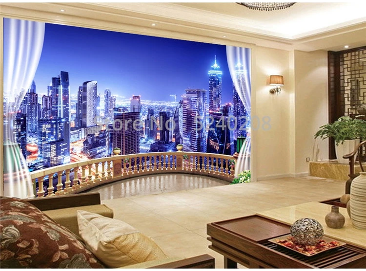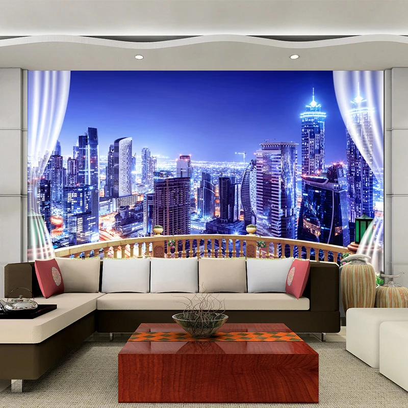 3D Настенные обои для современного городского строительства, Ночной пейзаж, фотообои для гостиной, самоклеящаяся Водонепроницаемая Съемная наклейка