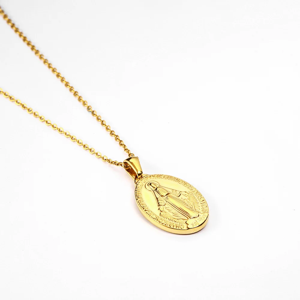 Роскошный цвет серебристый, золотой Нержавеющая сталь Девы Марии Очаровательное ожерелье, подвески для женщин, не вызывает аллергии, Бесплатная хип-хоп подвеска ожерелье с МадоннойМатериалы: Нержавеющая стальЦвет: серебристый, золотойРазмер подвески: 25x16 ммВес: Подвеска 5,7 г/шт.Длина цепочки: 45 + 5 см