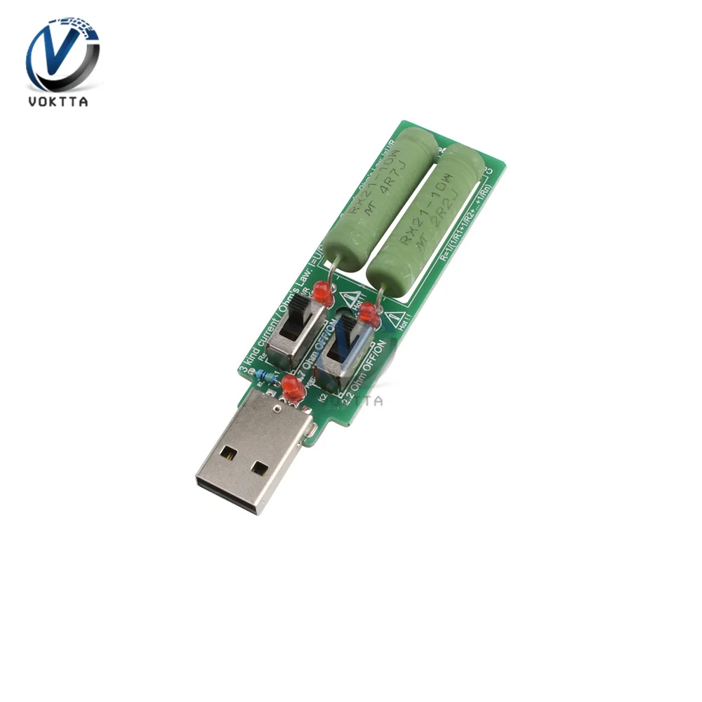 USB мини резистор DC электронная нагрузка с регулируемым переключателем 5 В батарея Емкость напряжение тестер разряда 2X10W двойной переключательРазработанный в соответствии с законом Ома и соединенный параллельно через другой переключатель, новый электронный резистор нагрузки USB может быть создан для разрядки трех резисторов. В тех случаях, когда все переключатели открыты, это 2,2 Ом/10 Вт, 4,7 ohms / 10 Вт, и параллельные Два виды резистора может генерировать почти 3A разрядный ток 5 В.
