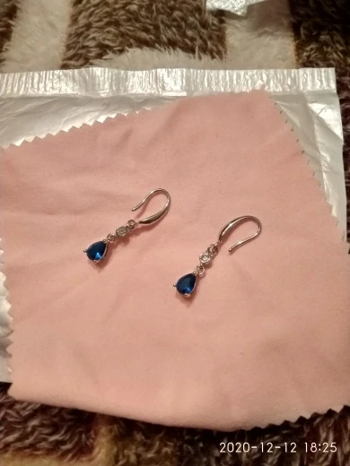 Заказ пришел через 20 дней в Тверскую обл.Продавец отправил без промедления. Упаковано в пакет с "пупыркой",без повреждений. Размер полностью соответствует фото магазина. Выглядят серьги очень качественно. Цвет камушков синий теплый. Легкие. Отлично подходят для повседневного ношения.Не облезают,не темнеют (лежат в ванной комнате,где часто очень влажно). Отличное качество. Буду заказывать еще.К покупке рекомендую! Спасибо магазину!