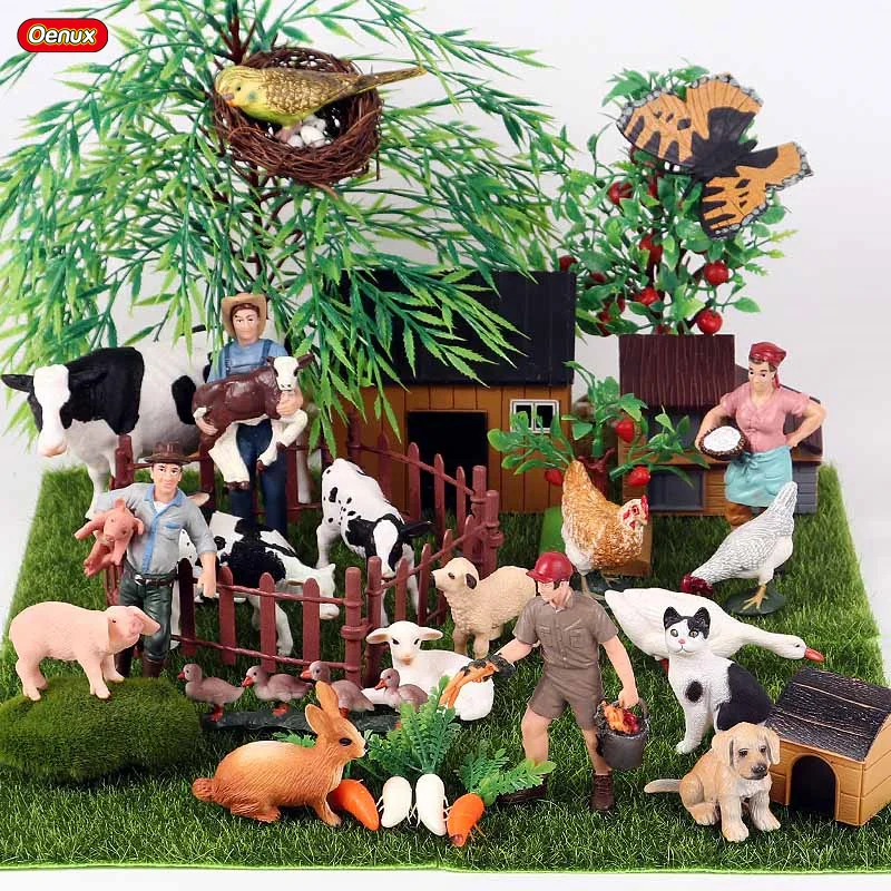 Характеристика:Oenux прекрасный зоопарк ферма персонал моделирование фермер корова курица свинья птица животные модель фигурки DIY ПВХ образовательная симпатичная детская игрушка