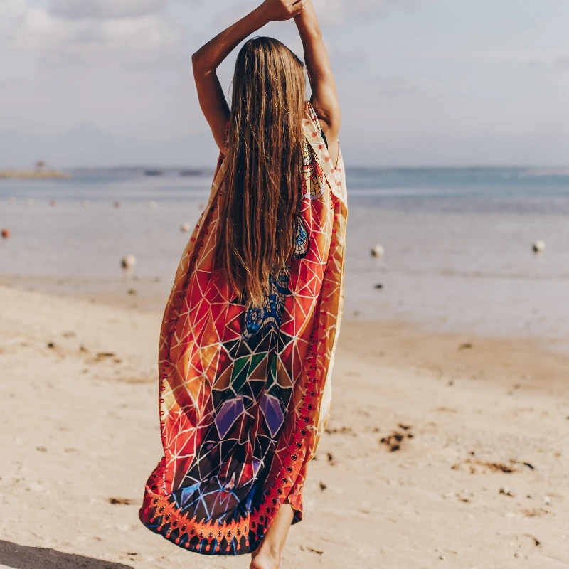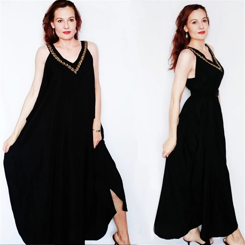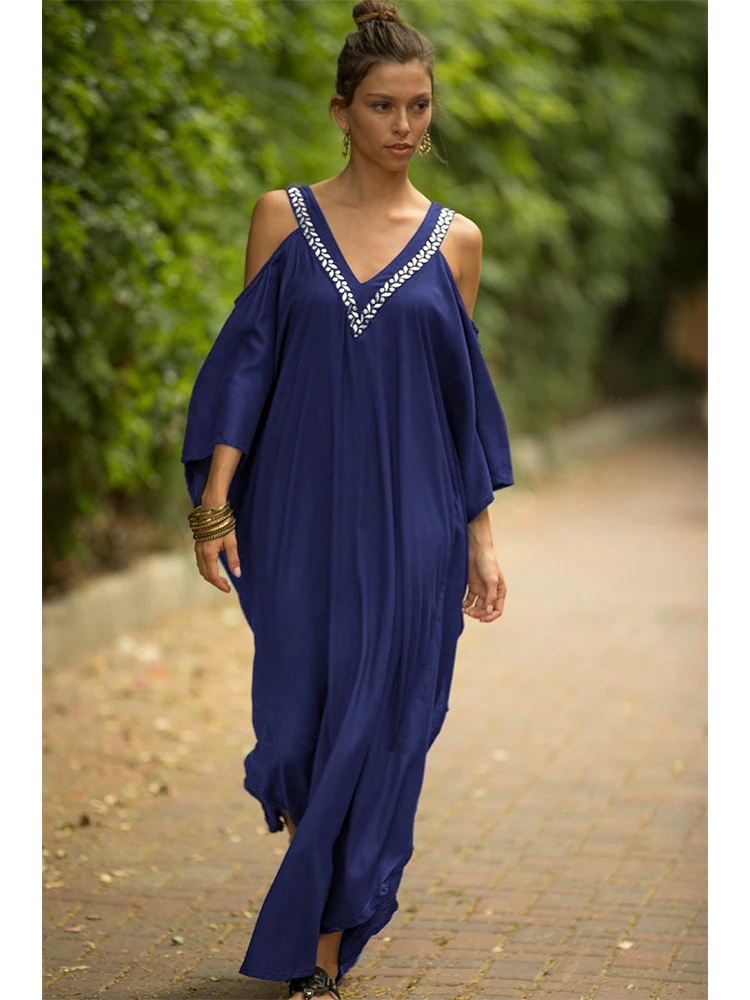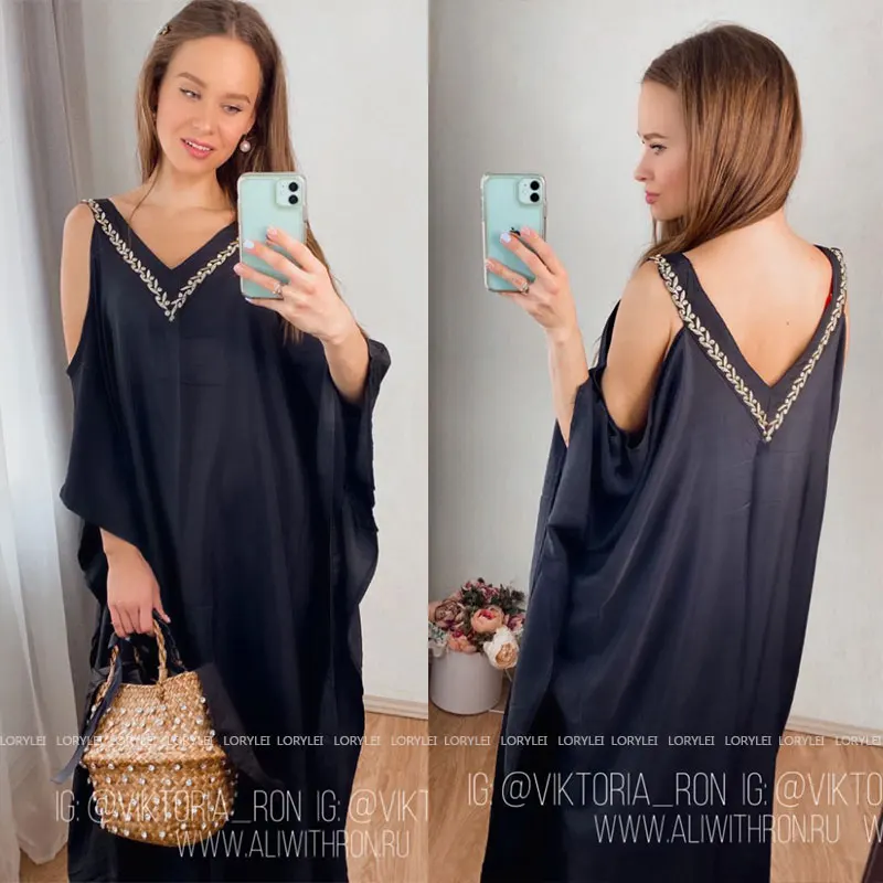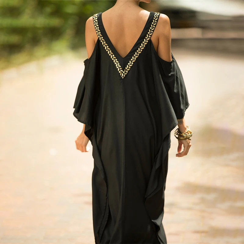 2022 сексуальное свободное летнее пляжное платье с V-образным вырезом и рукавами летучая мышь, женская пляжная одежда, кафтан, черное платье Q943