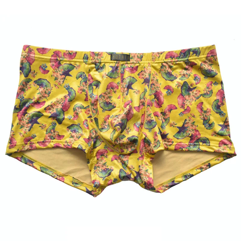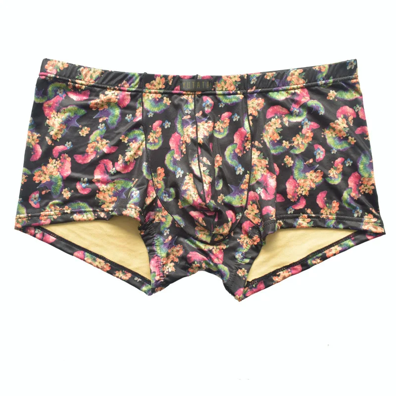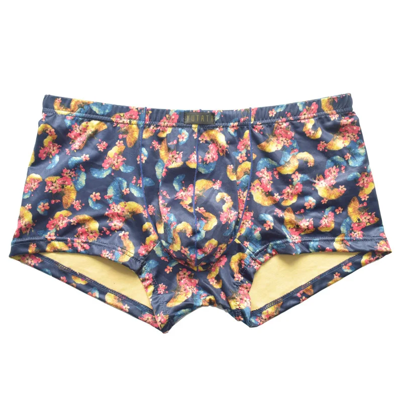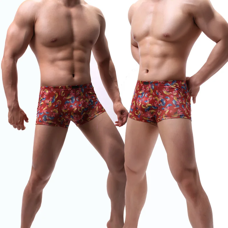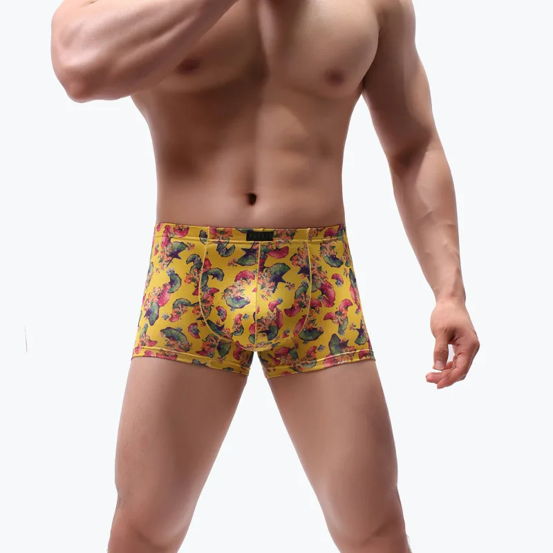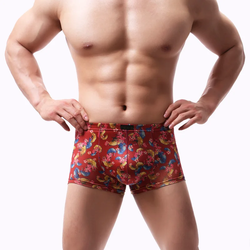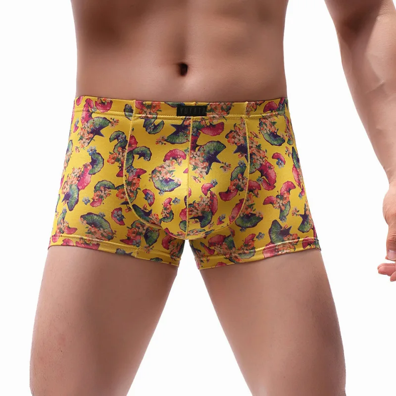 Трусы-боксеры мужские, шелковые, с низкой талией, с цветочным принтом
