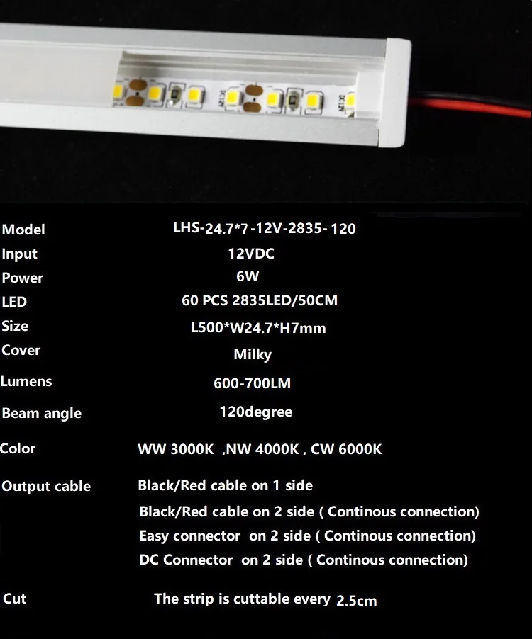 Полоса 2835 30 светодиодов светильник (60 светодиодов на метр)Мощность 2,1 ВтВход 12 В постоянного токаЛюмен 180-220 лмCCT WW3000K,NW 4000K ,CW 6000K