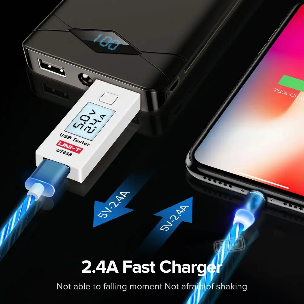 Светящийся кабель 2,4 А, внешний USB Type C, Зарядные кабели, свето...