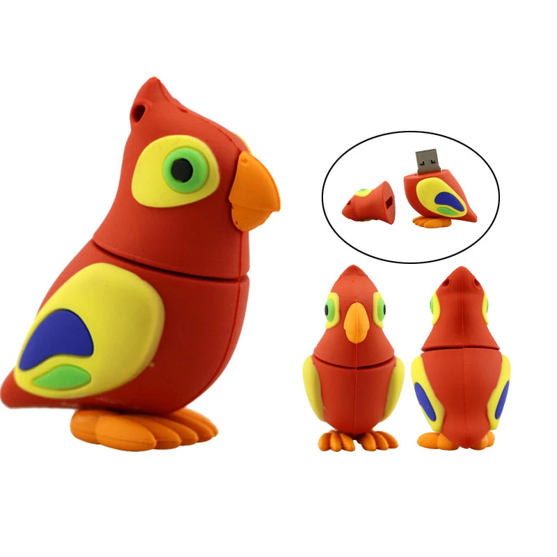 Cle Usb милый попугай птица usb-накопитель, карта памяти, креативный подарок 4 ГБ 8 ГБ оперативной памяти, 16 Гб встроенной памяти, флеш-накопитель 32 Гб 64 Гб флэш-накопитель 128 256 ГБ флэш-накопитель