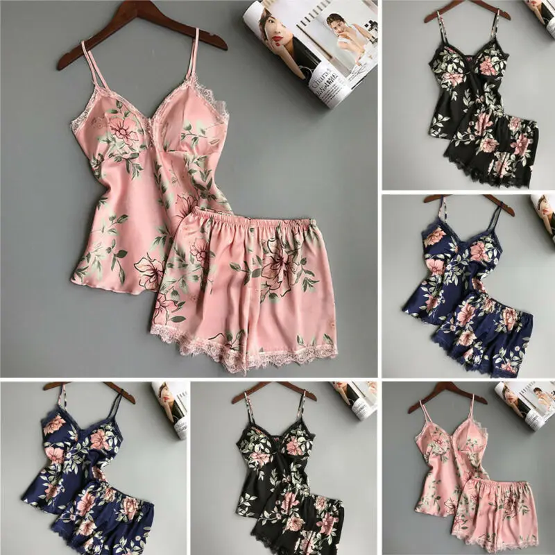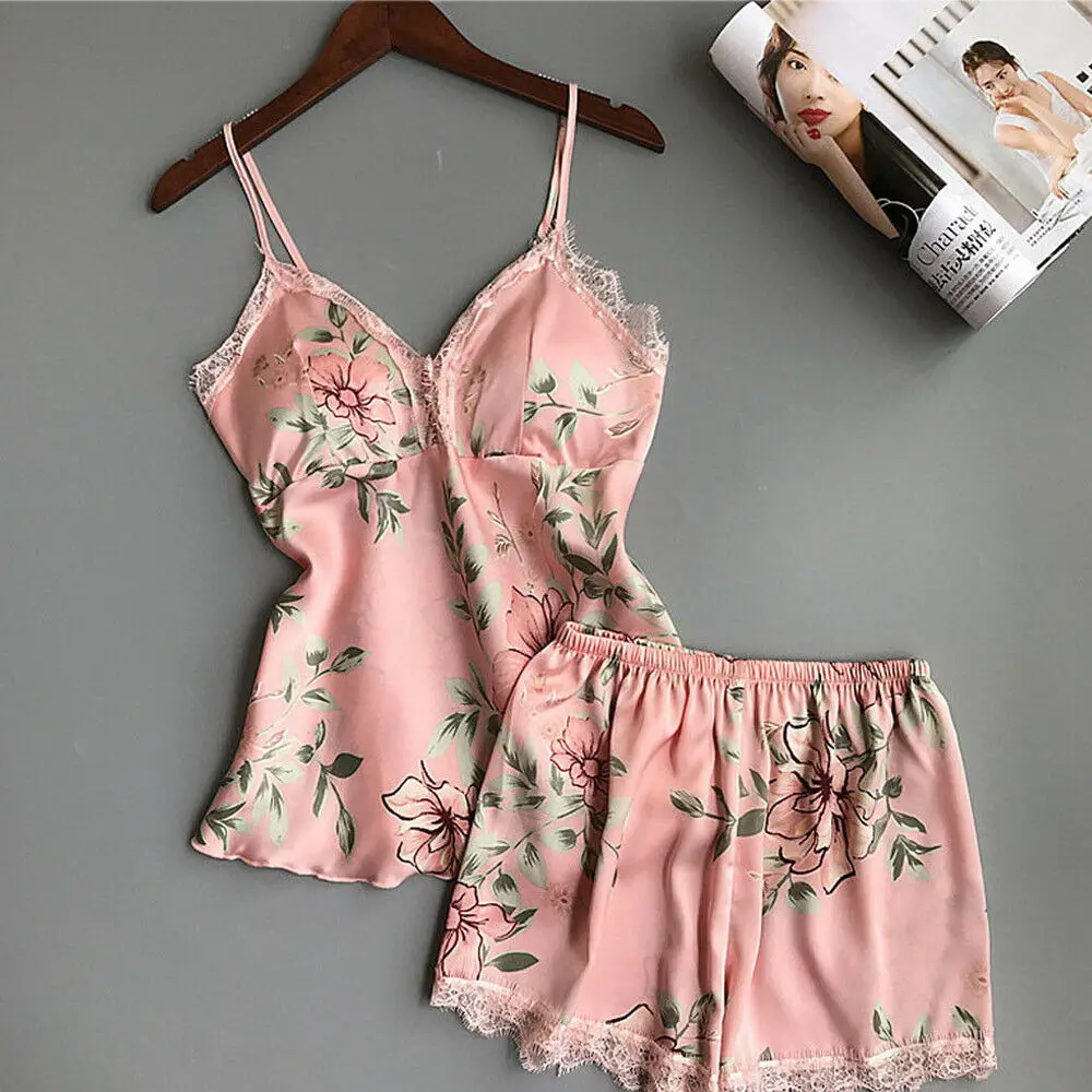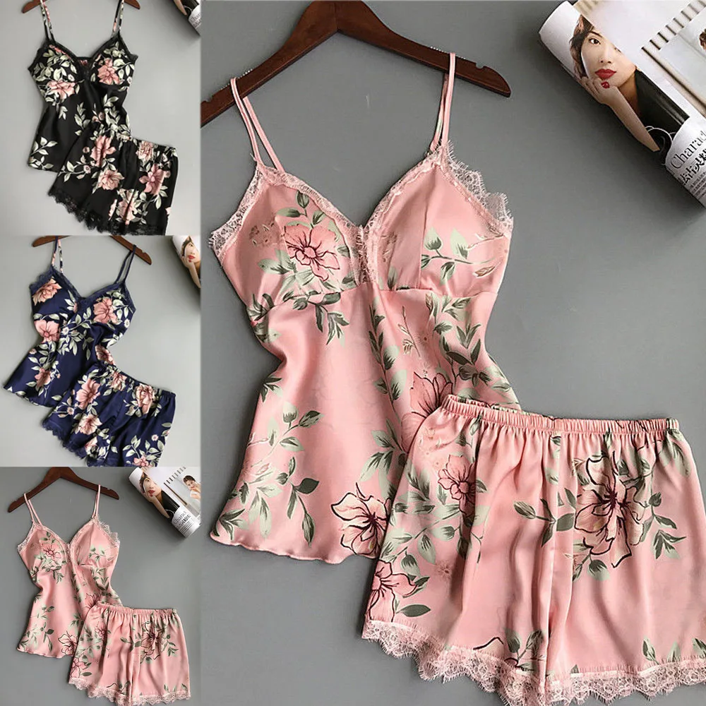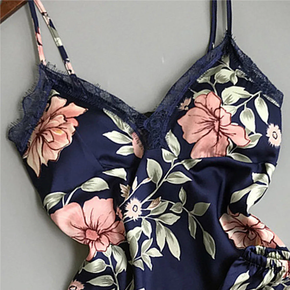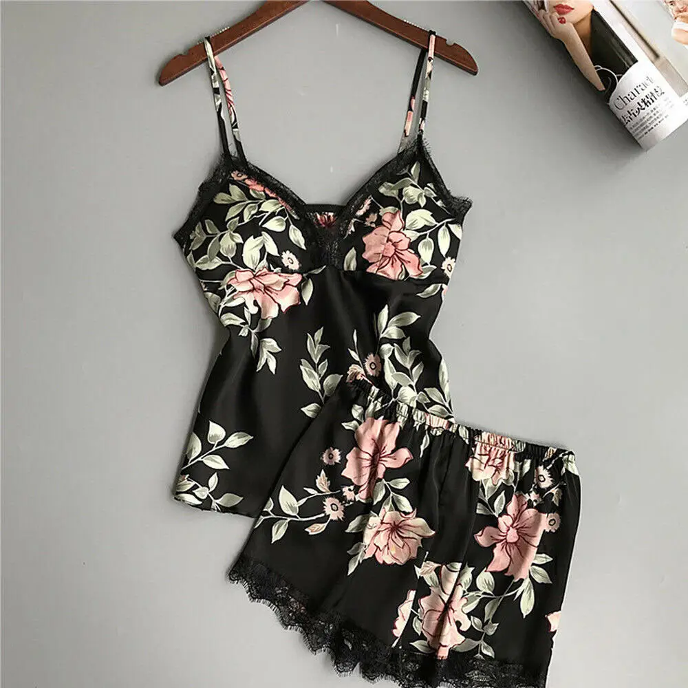 Женская атласная пижама размера плюс с кружевом, комплект из 2 предметов