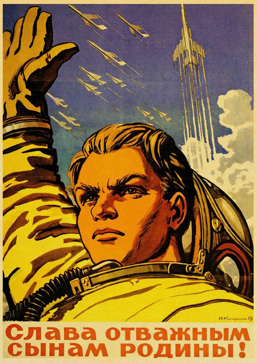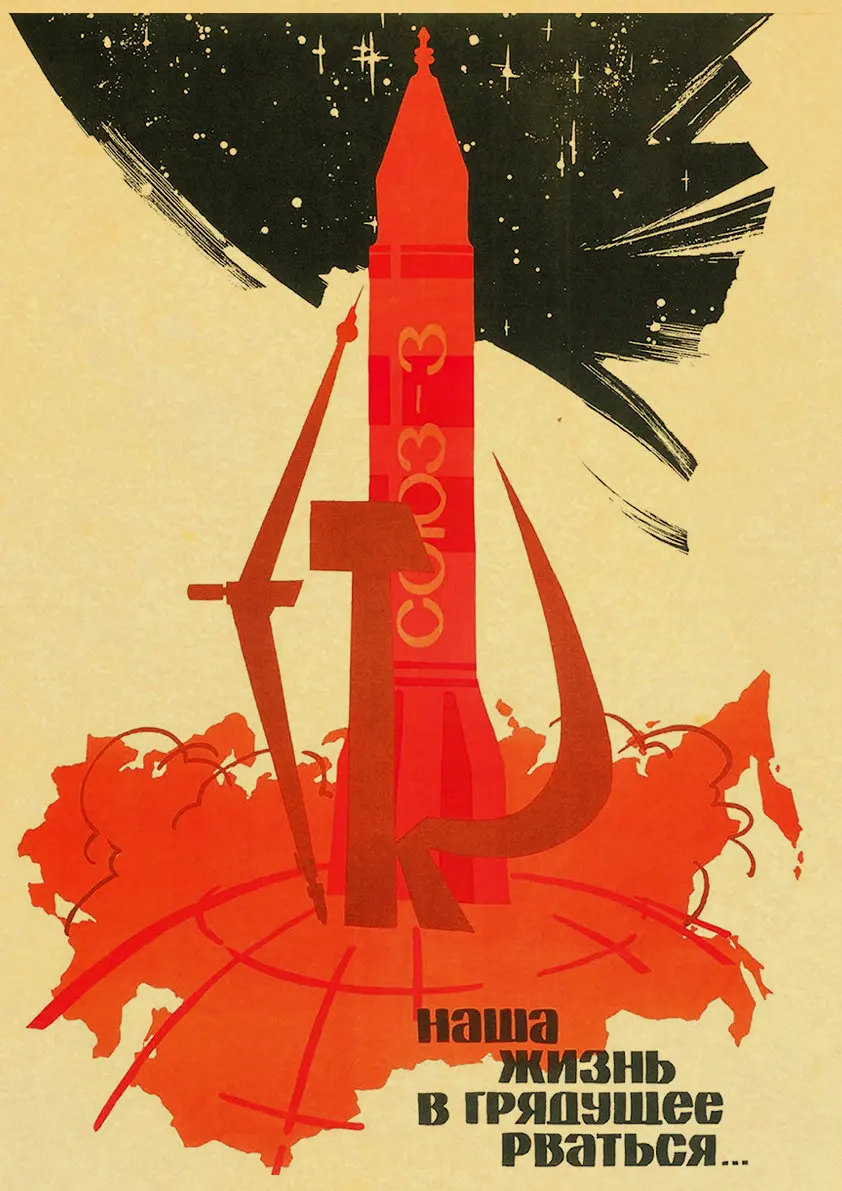 Винтажный российский пропагандистский постер, Постер космической гонки, наклейки, наклейки СССР для печати, настенные картины, декор для ванной комнаты