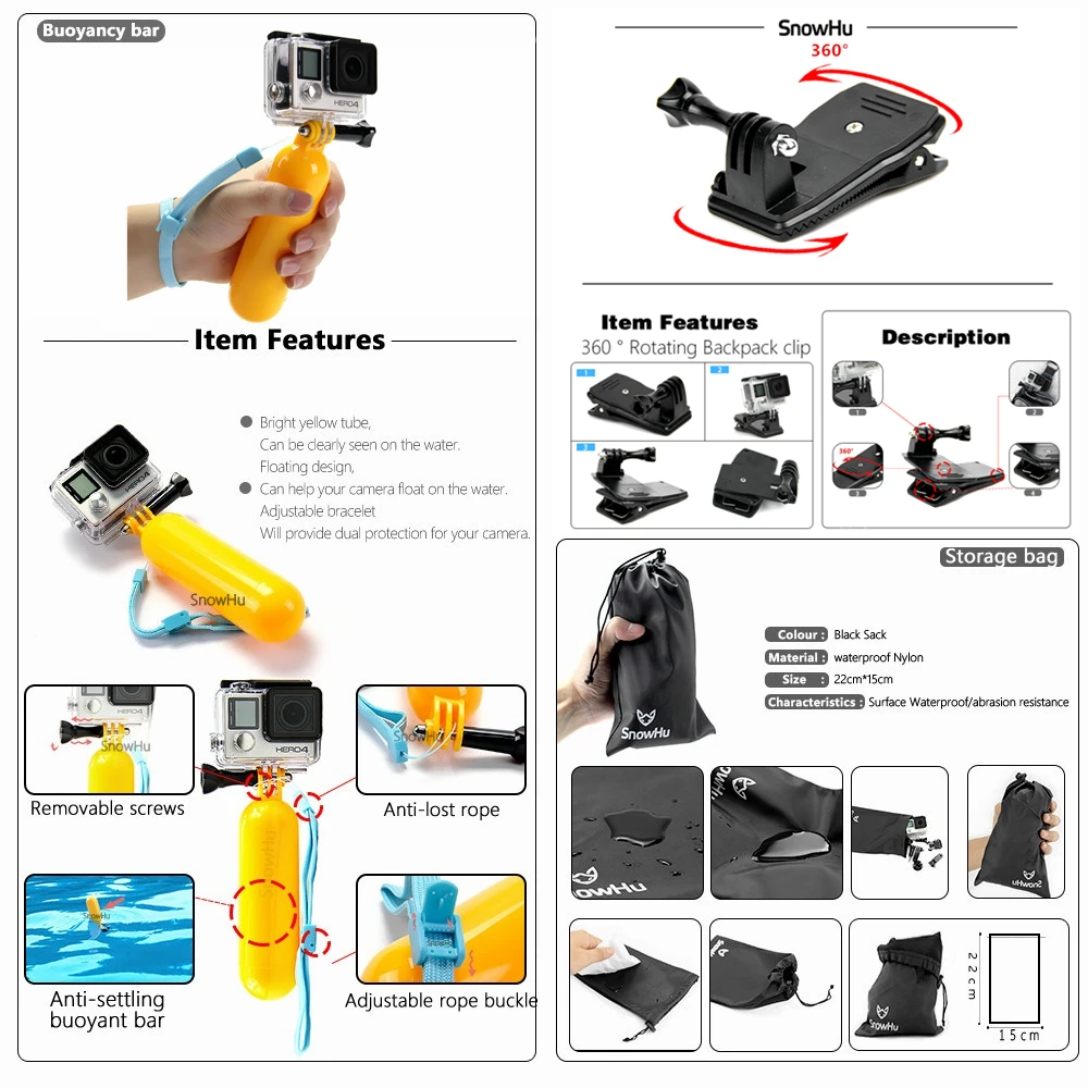 Аксессуары для экшн-камеры SnowHu для GoPro Hero 8 7 6 5 4 5S черный Xiaomi Yi 4K 4K + Lite SJCAM SJ7 Eken H9 Go Pro крепление Nikon GS02