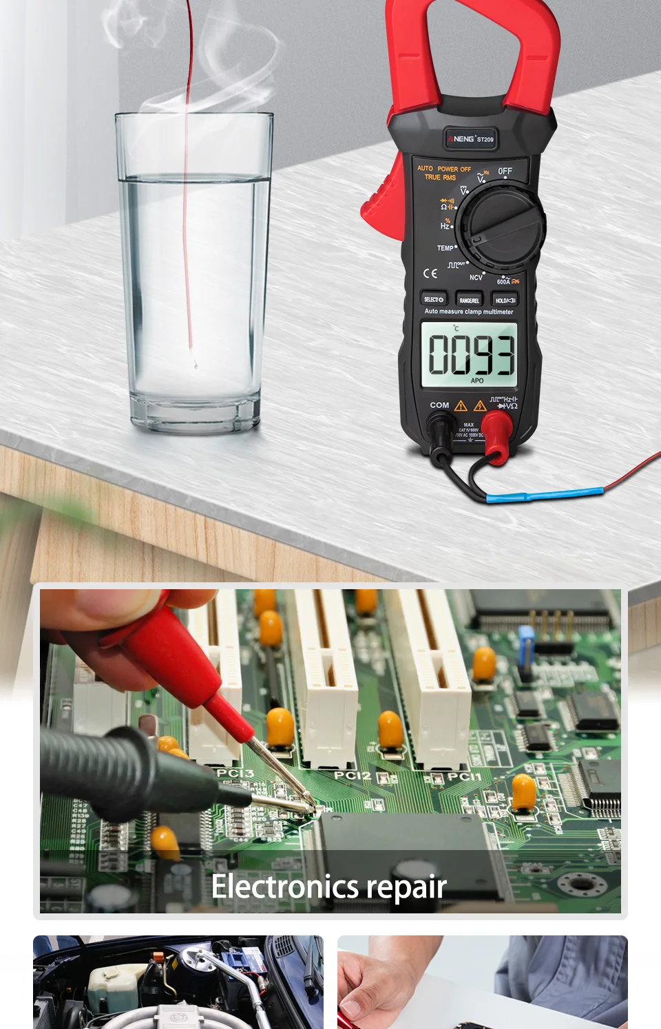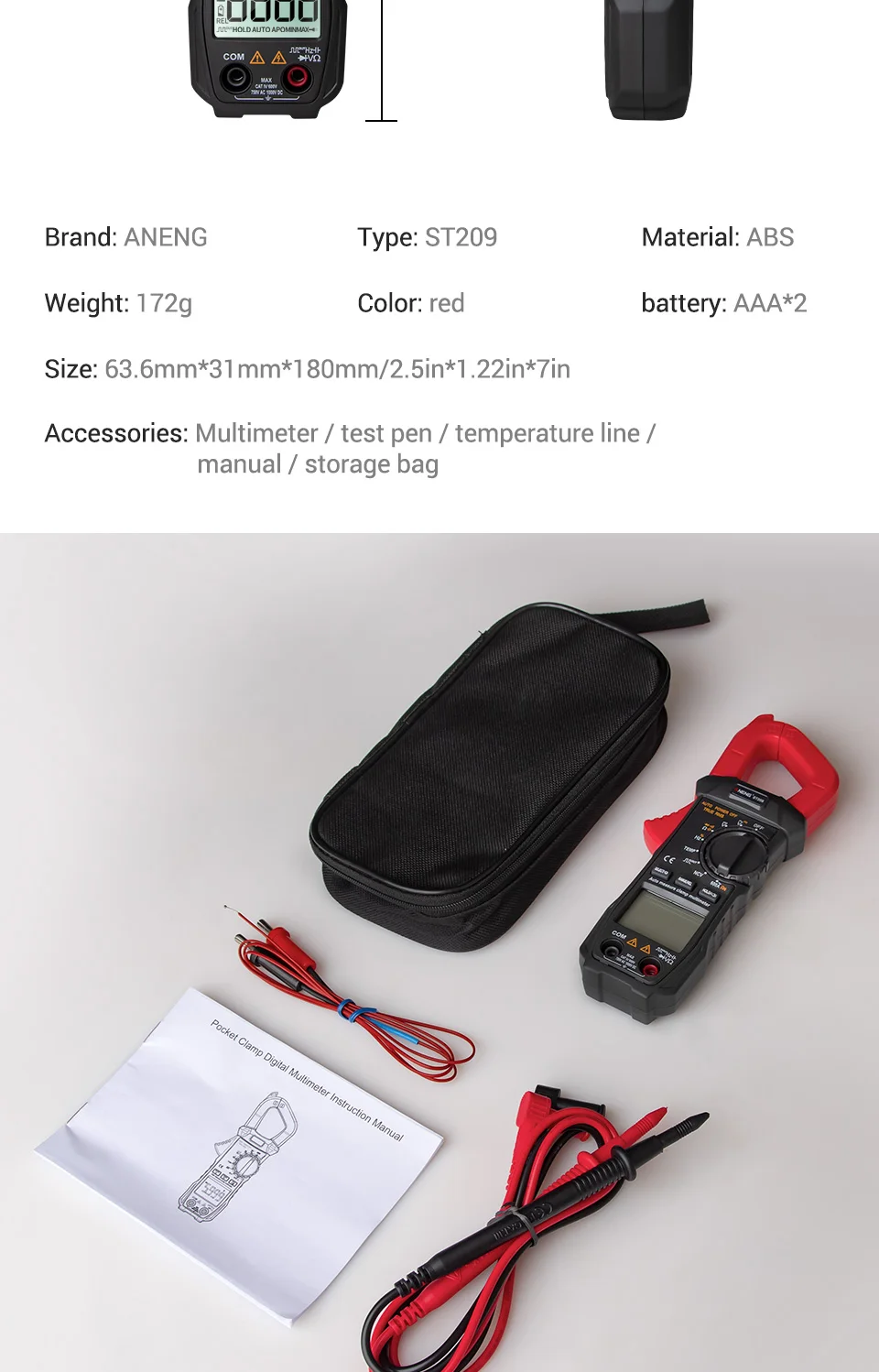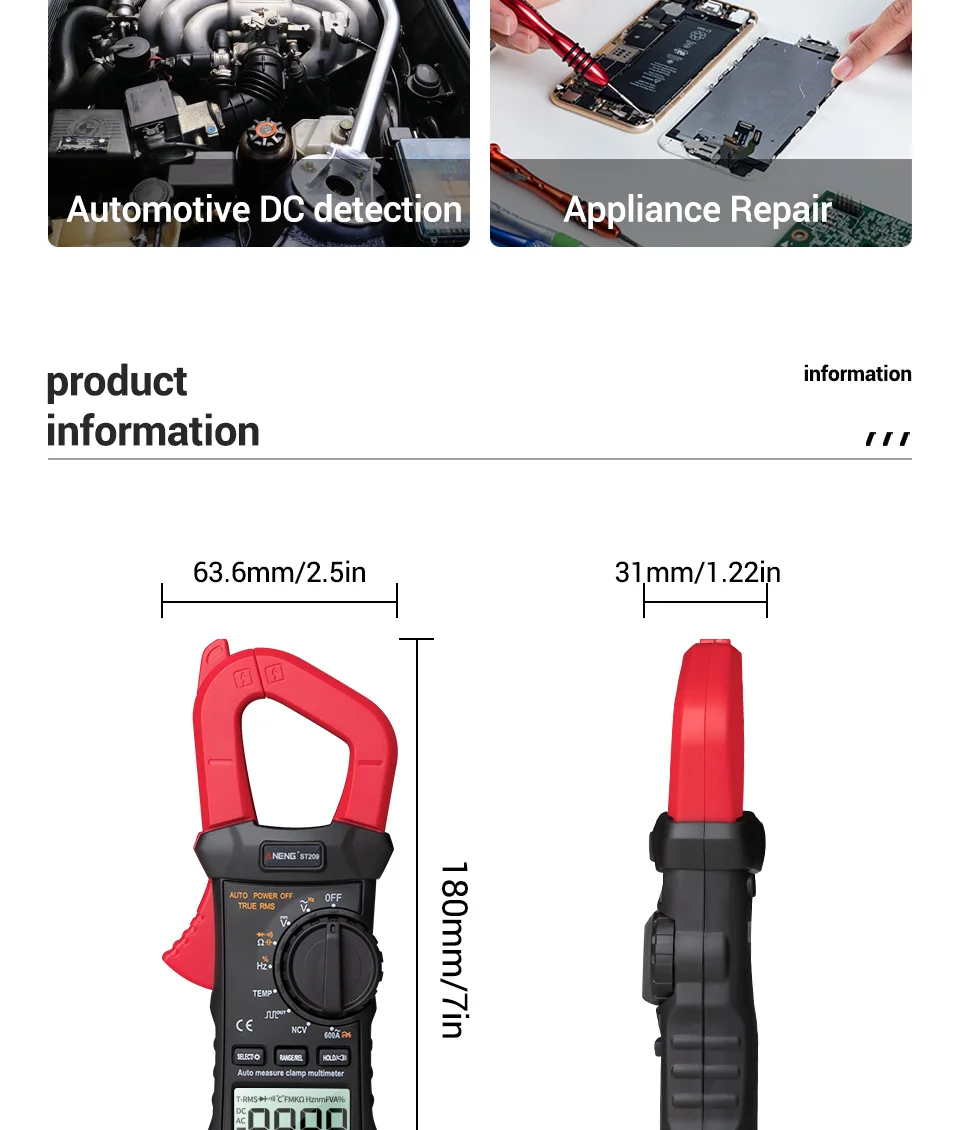 ST209 карманные цифровые клещи NCV AC DC Напряжение Ток Амперметр Вольтметр Емкость Ом тестер Бесконтактный измеритель тестирование