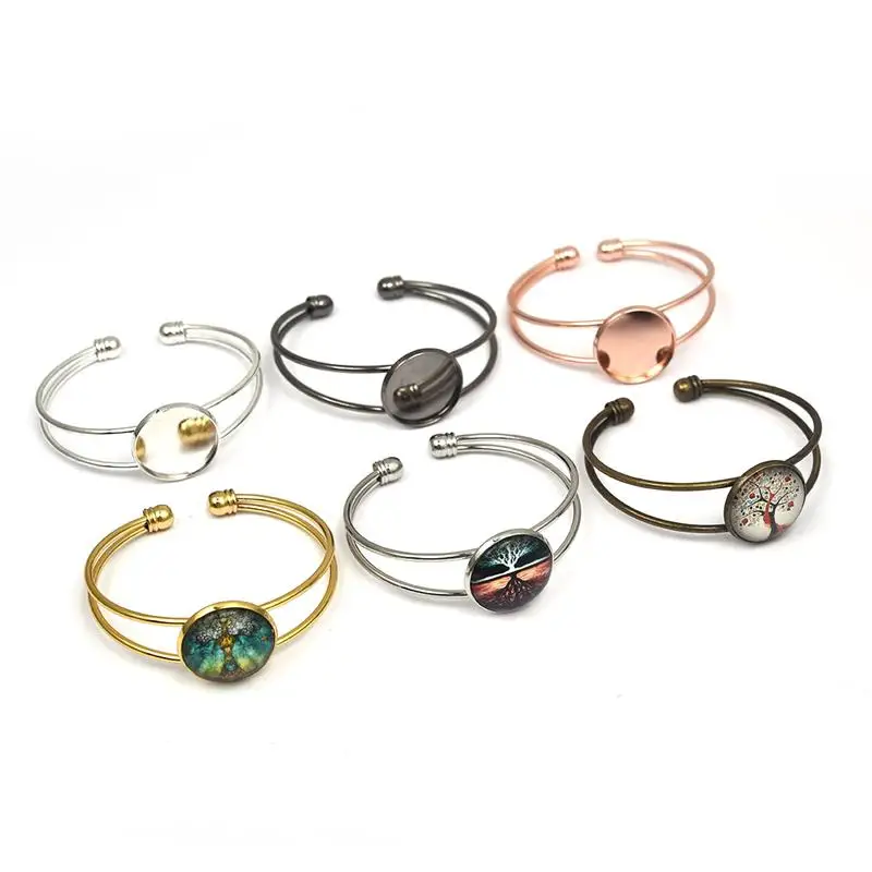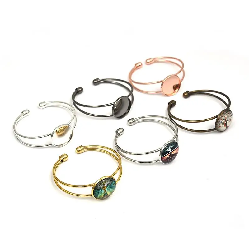 Регулируемое основание для браслета пустые браслеты, латунная оправа-лоток для браслетов-манжет, кабошон 20 мм, комплектующие для ювелирных изделий сделай сам, 5 шт.