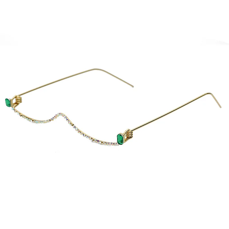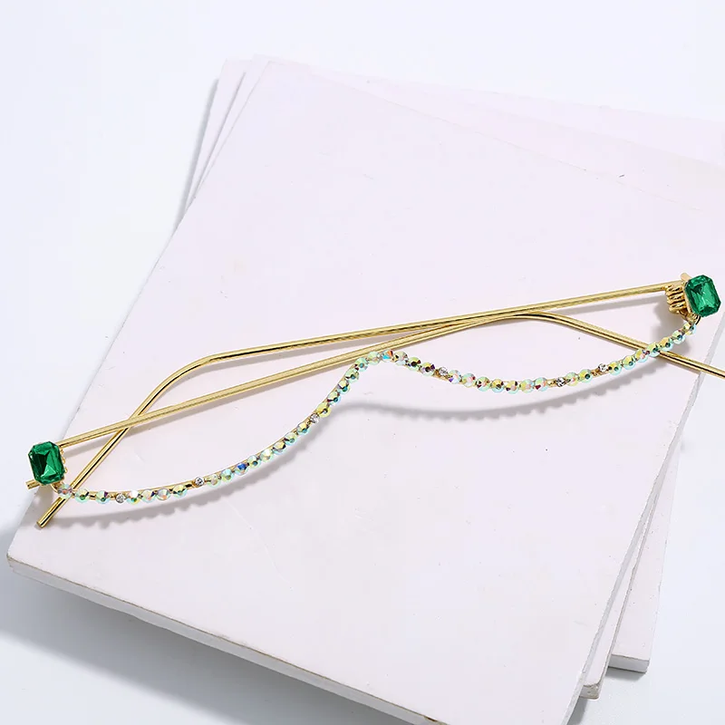 Модная оправа для очков с бриллиантами для женщин, роскошные Полуободковые очки с кристаллами, красочная цепочка, красная, зеленая, розовая искусственная кожа