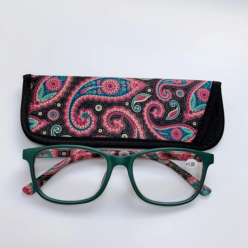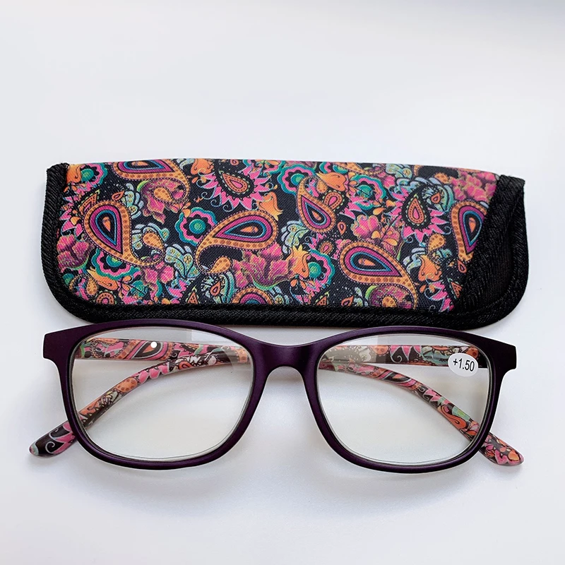 Очки для чтения с пружинной петлей женские, карманные пресбиопические, для чтения с принтом и подходящим чехлом, + 1,0 1,5 2,0 2,5 3,0 3,5 4,0