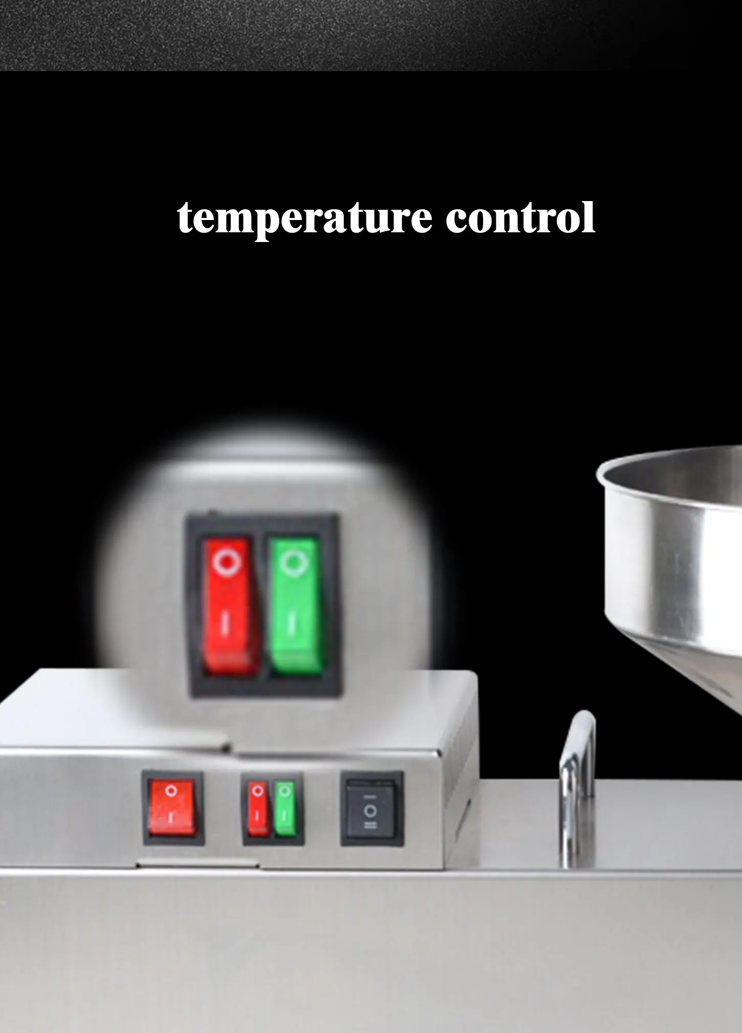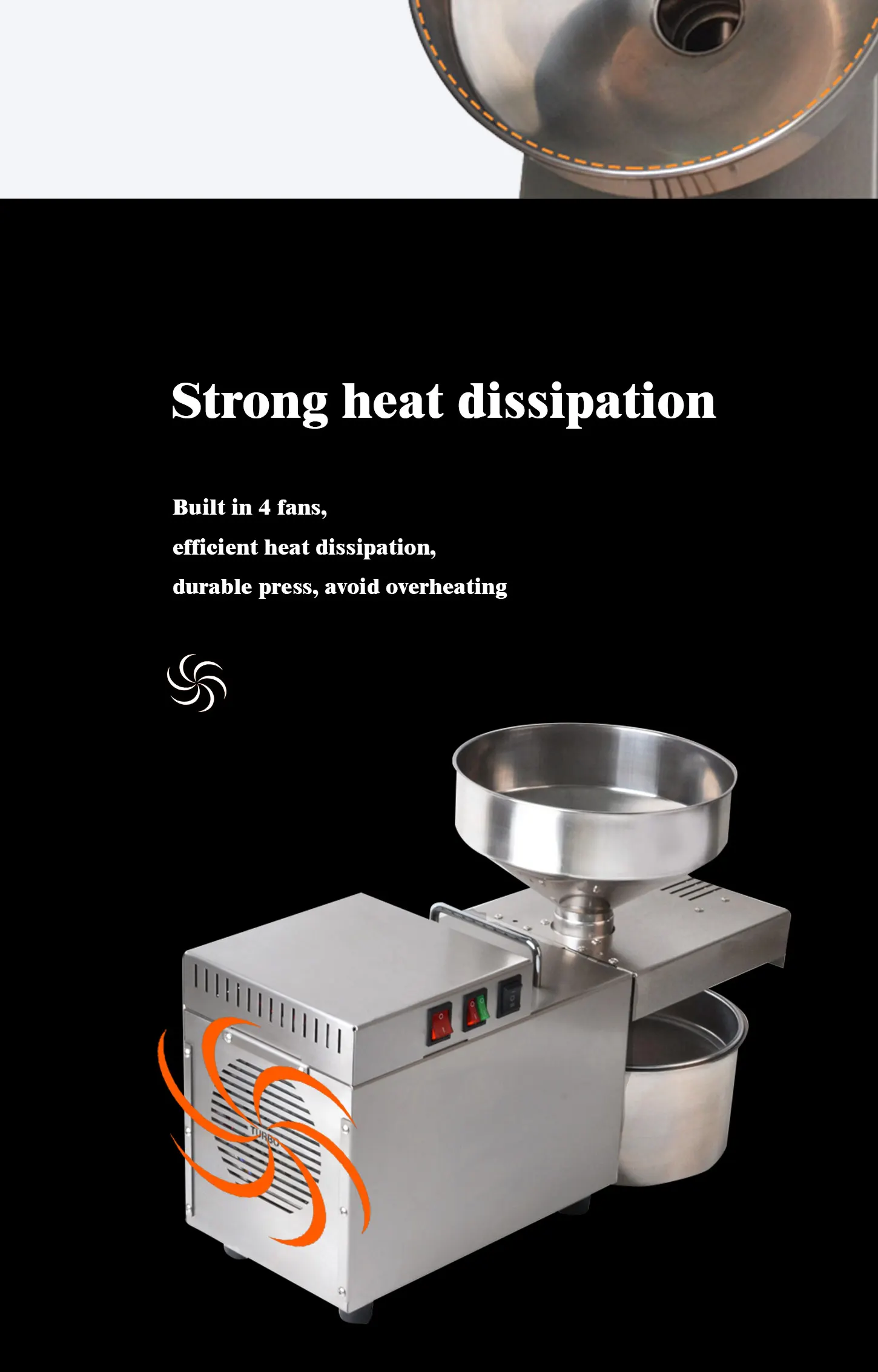 304 пищевой материал из нержавеющей стали, изысканный дизайн внешнего вида, сильный и прочный двигатель, большой охлаждающий вентилятор для продления срока службы машины.