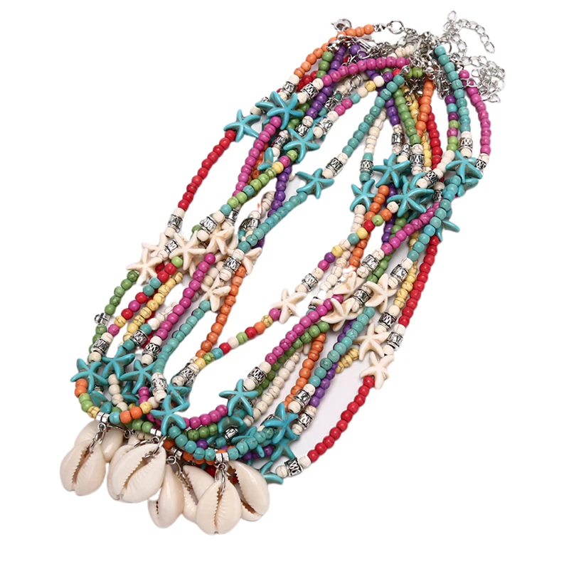 Модный Цветной бисер, колье, Морская звезда, для женщин, Модный богемный, летний шик, колье, Femme Cowrie Shell, ожерелье с подвеской