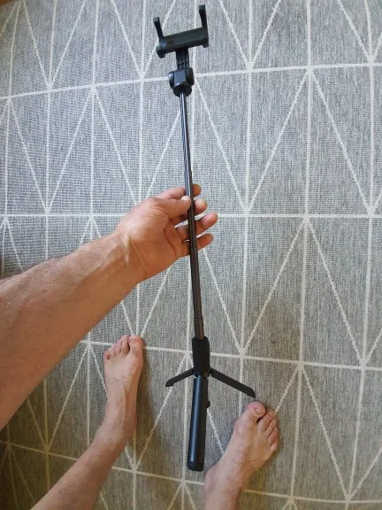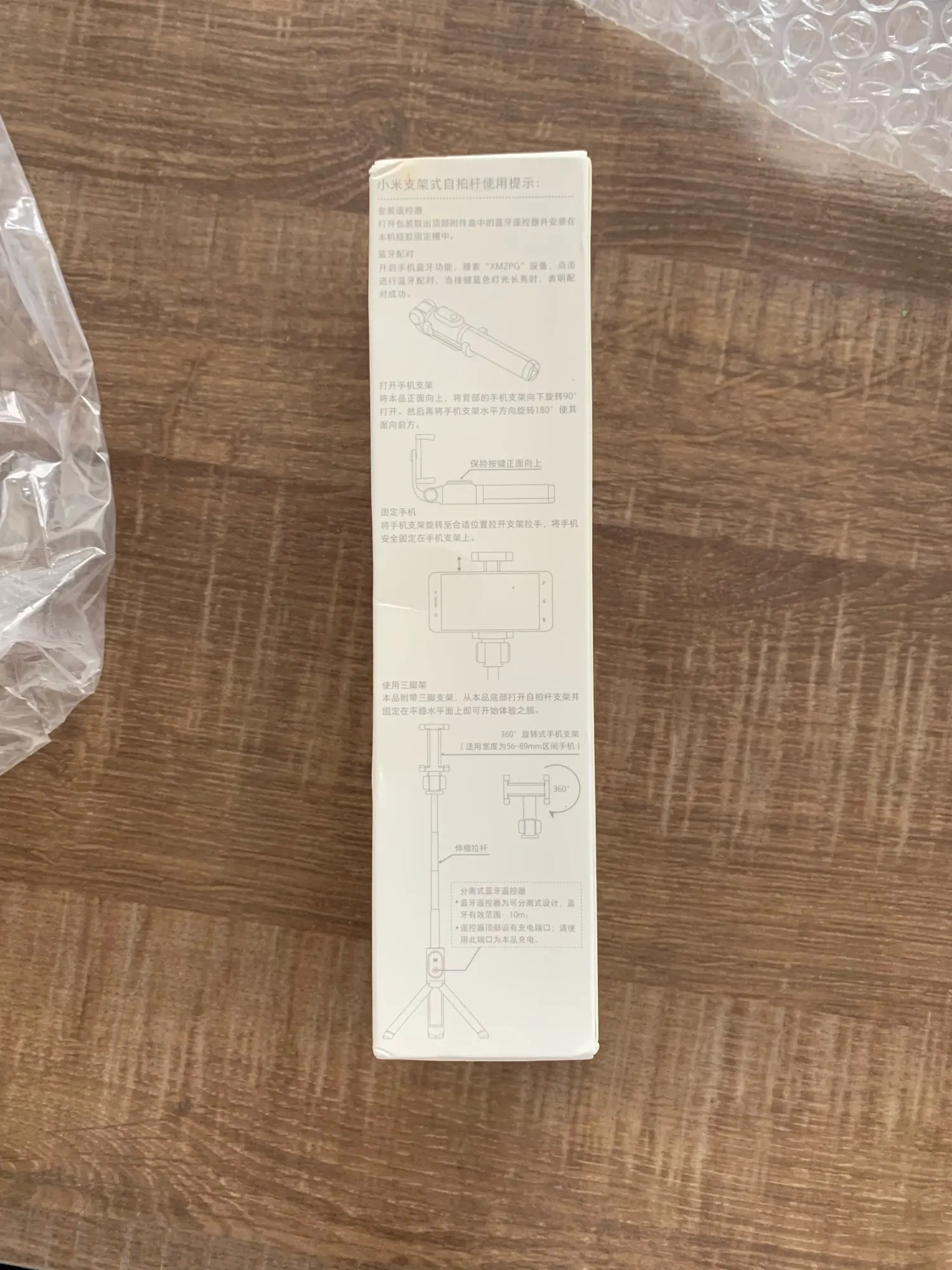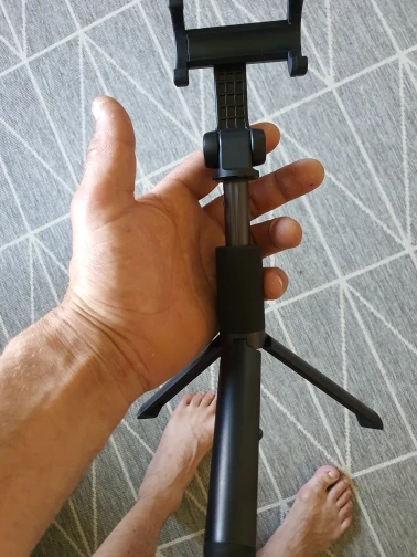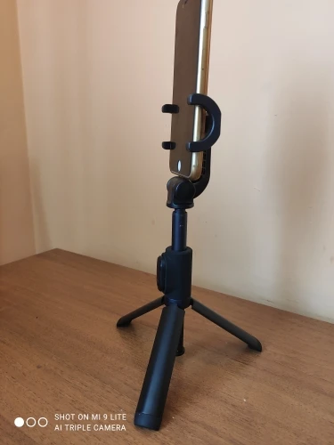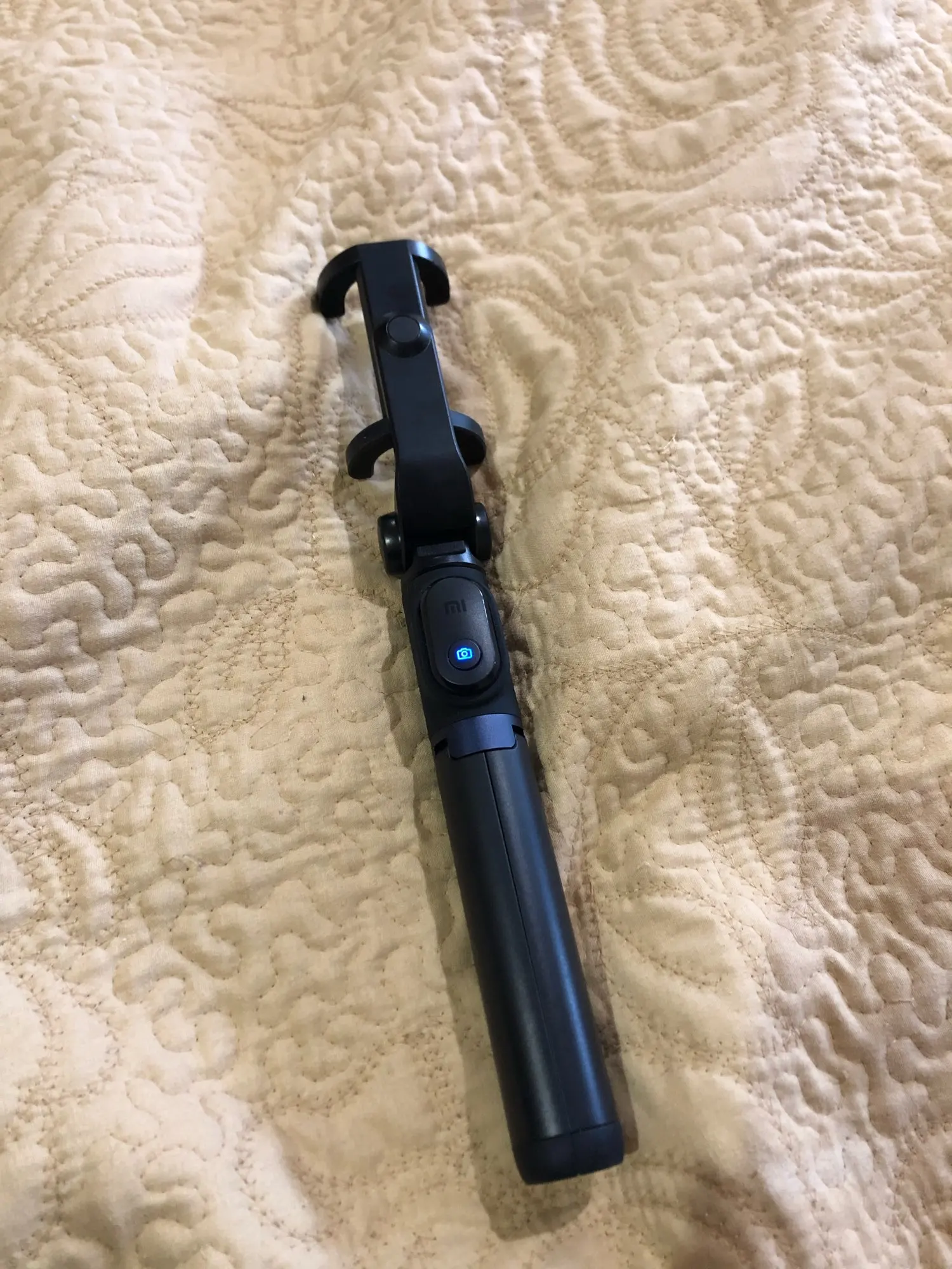 Соответствует описанию. Пришло в родной коробке, которая упакована была в пупырчатый пакет. Селфи-кнопка была разряжена, после подзарядки сразу сконнектилась с MI6. Все работает. Палка удобная в руке, телефон держит нормально.