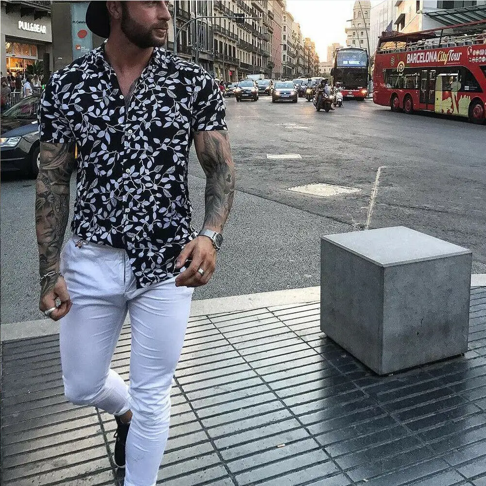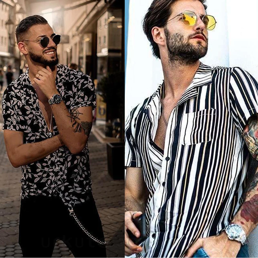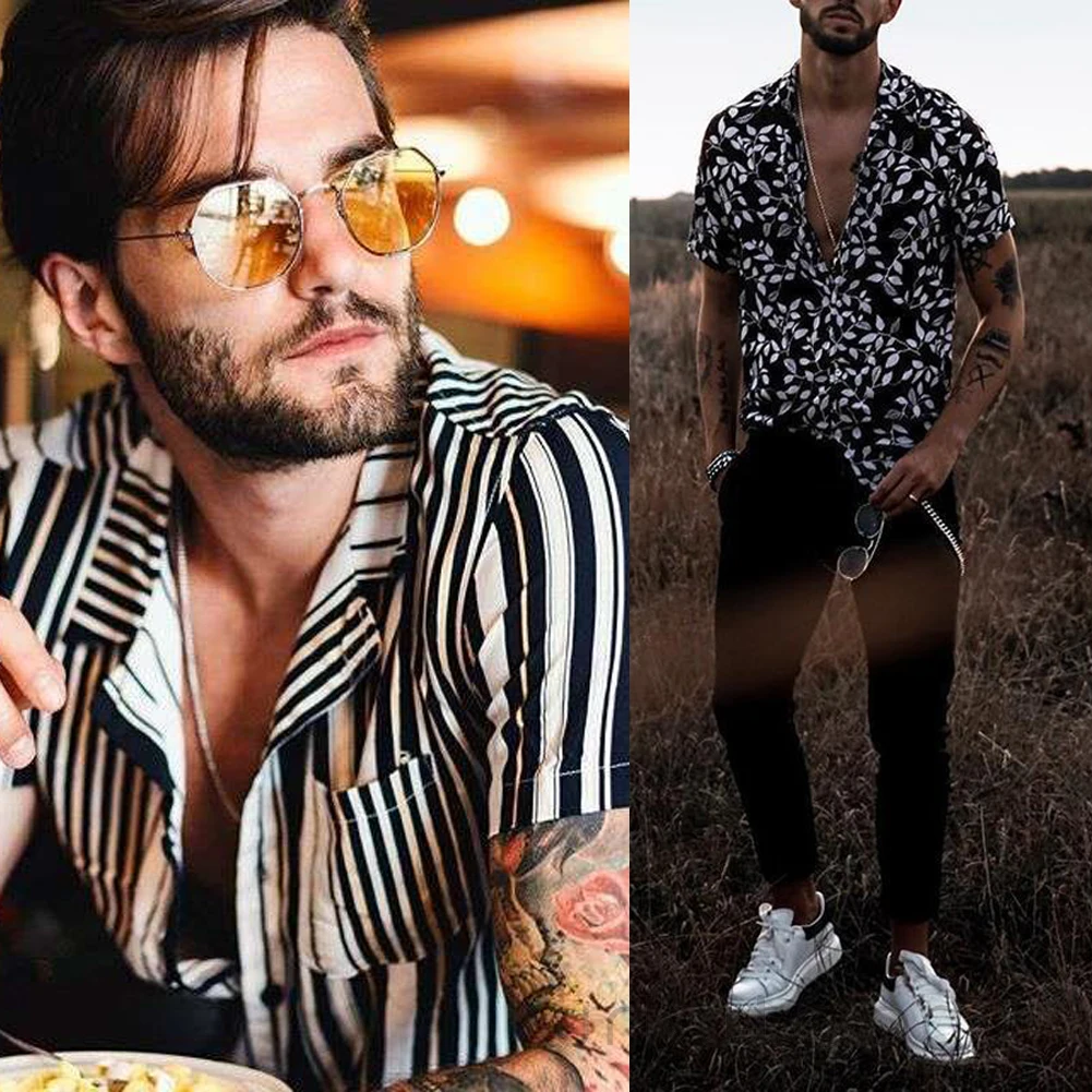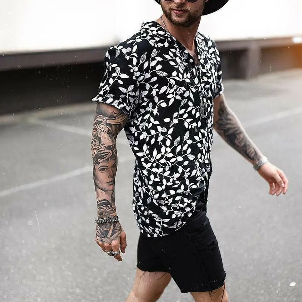 Новые модные мужские Гавайские рубашки летняя с цветочным принтом Пляжная рубашка с коротким рукавом Тонкая Camp Рубашка Топы Спортивная Блузка Футболка Одежда