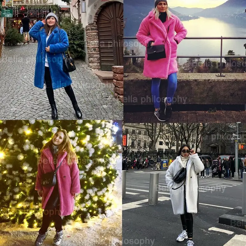Женское пальто из искусственного меха Bella Philosophy, желтое и фиолетовое длинное пальто с плюшевым мишкой, свободное, для зимы