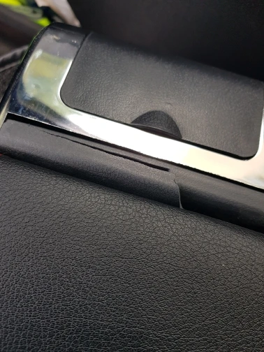 Кожаные детали салона автомобиля, центральная консоль, подлокотник ...