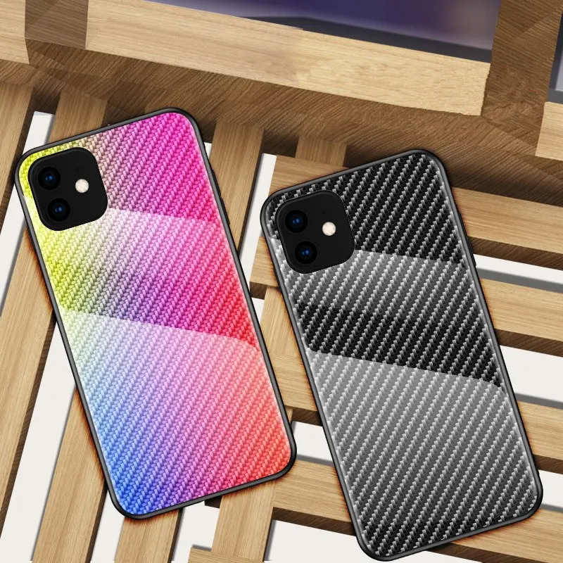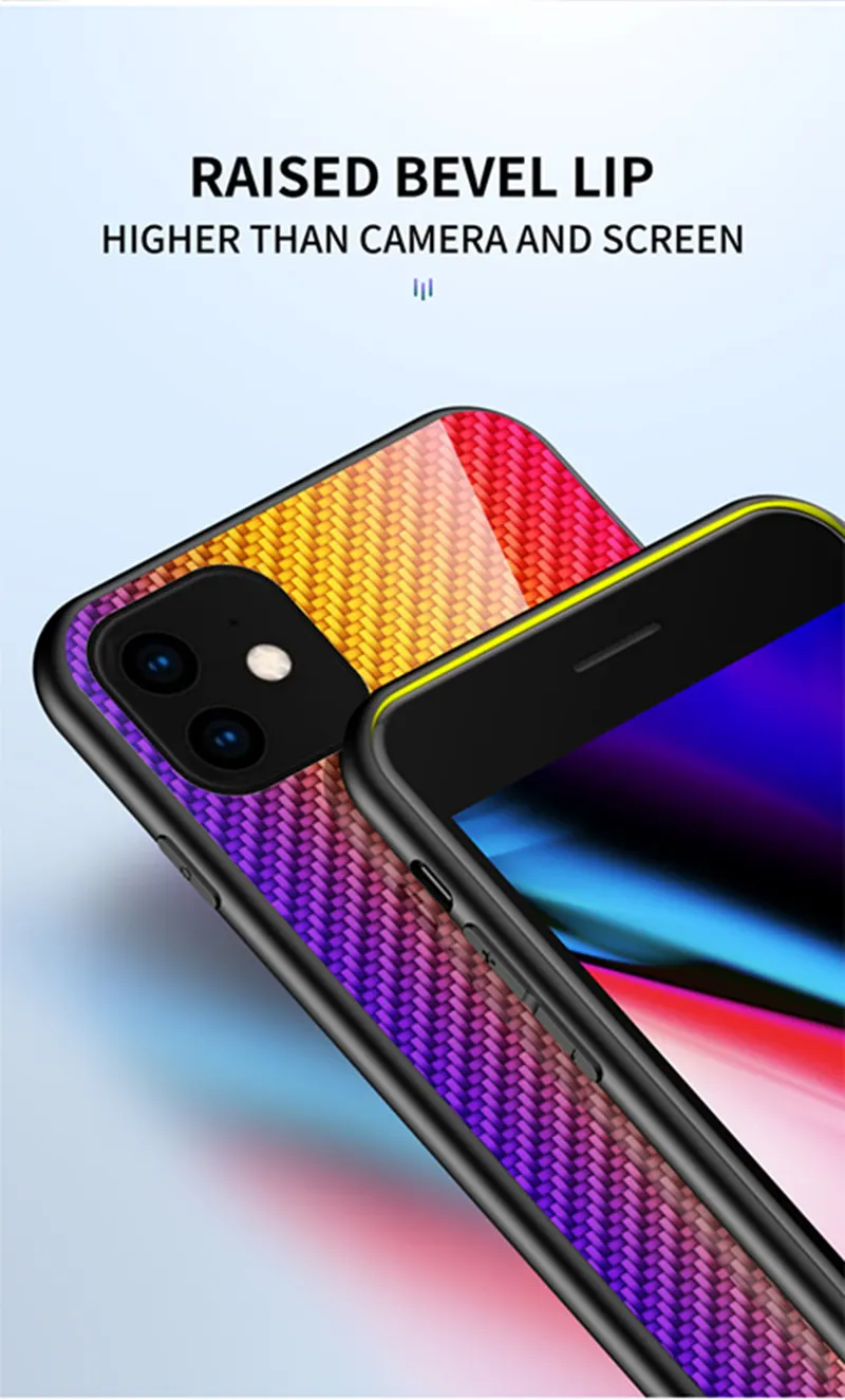 Роскошный чехол из углеродного волокна для iPhone 13 12 11 8 7 6 6S Plus XR XS MAX, градиентное витражное стекло для iPhone 12 Pro Max