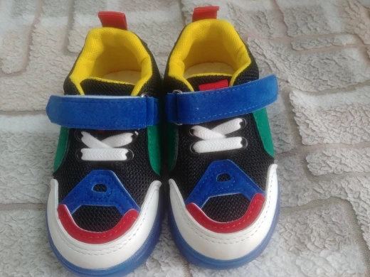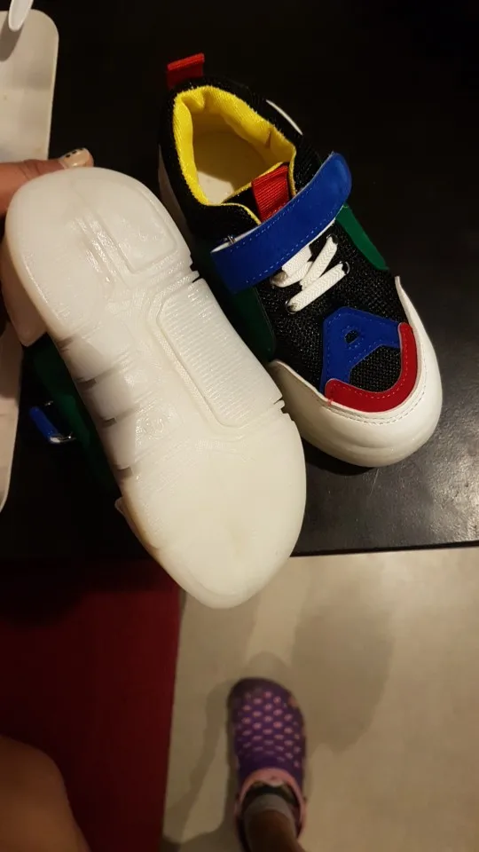 Вообще кроссовки красивые и очень понравились малышу, но: 1. По таблице продавца 23 размер - это длина стопы 13,5 и длина стельки 14,5 см. На деле же оказалось, что стелька 13,5 см. У сына ножка 13,2 см, оказались впритык и летом уже не сможет носить. 2. После нескольких раз ношения только в качестве сменки на массаж отвалились все люверсы и висят теперь на шнурках-резинках. 3. Когда получила, обрисовала продавцу ситуацию с размером, он читал сообщения, но никак не реагировал. Спустя неделю одностороннего общения открыла спор на возврат половины стоимости, и в тот же день всё одобрили. В целом - яркие, красивые, мигают и это безмерно радует ребёнка! Удобно одевать и снимать, тактильно приятные) выполнены здорово, за исключением некоторых моментов... Немного расстроена из-за размера, но хоть вот на сменку поносим... Три недели до Калужской области. Трек отслеживался везде.