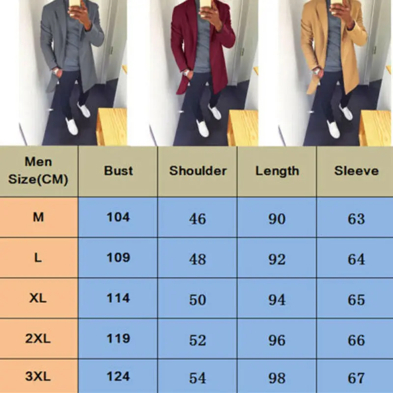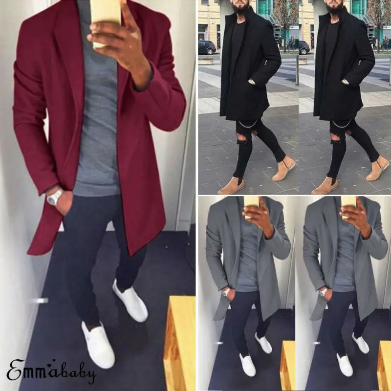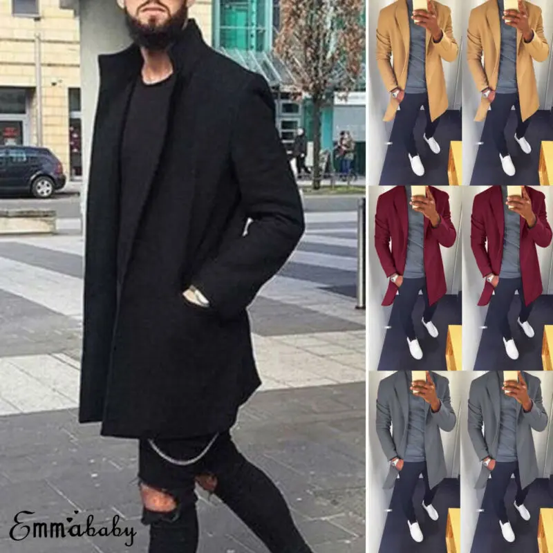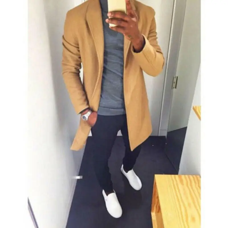 Мужской Повседневный шерстяной тренчкот, однотонная Классическая куртка средней длины, верхняя одежда для осени и зимы