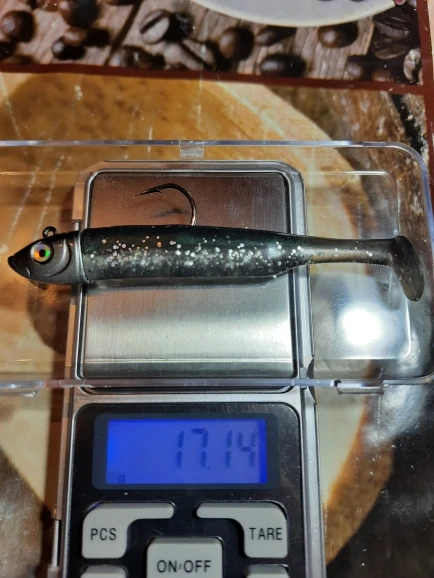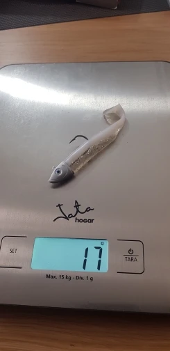 17гр. это вместе с резиной , значит сама джиг головка 12гр. Джиг головка хорошая , крючек острый , про резину пока сложно сказать ,но на вид хорошая , еле заметный не понятный запах. Понравилась удобная упаковка. За 153руб. и монеты нормально , за полную цену не взял бы.