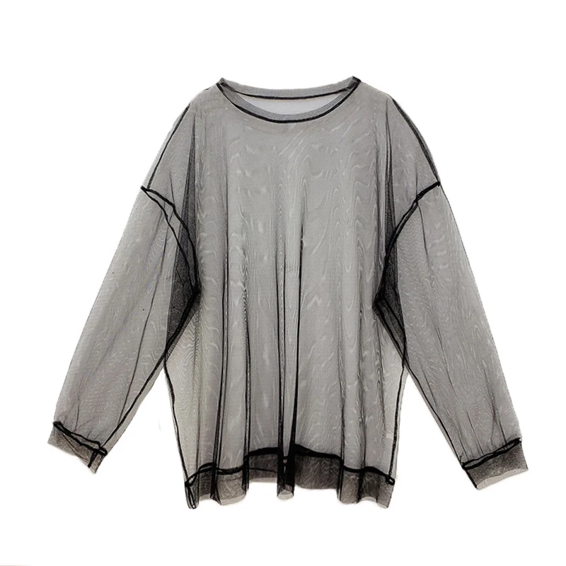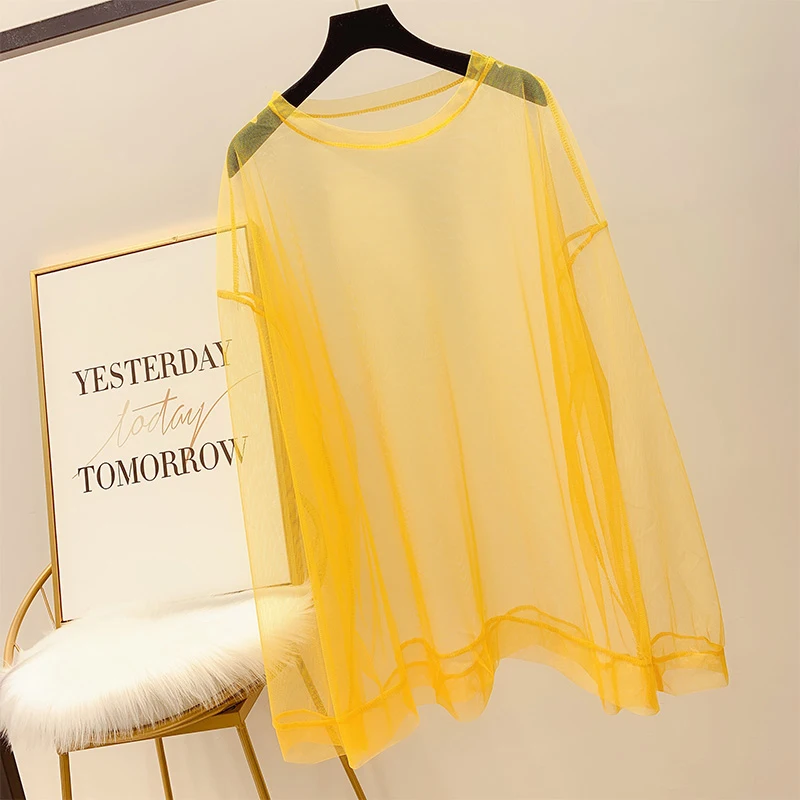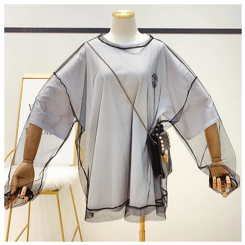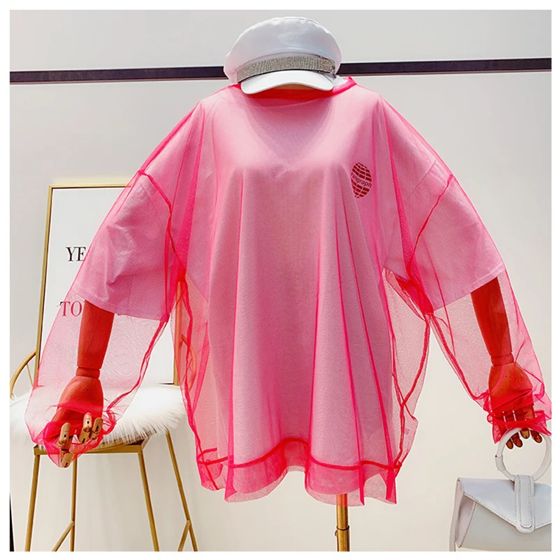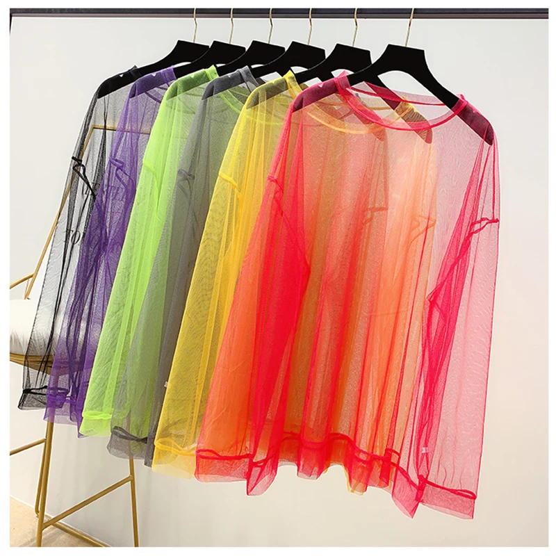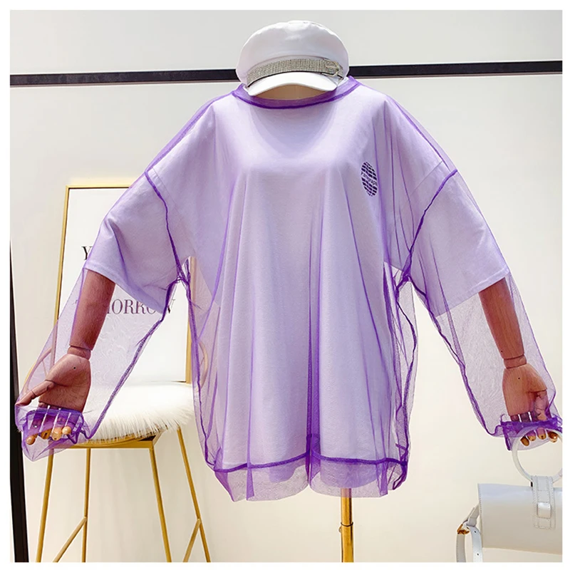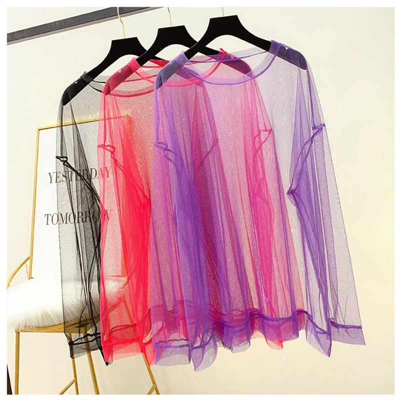Женская прозрачная Сетчатая футболка с длинным рукавом и круглым вырезом