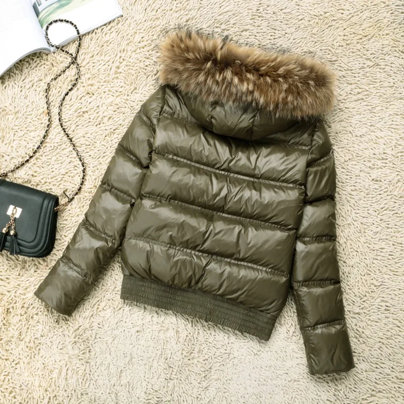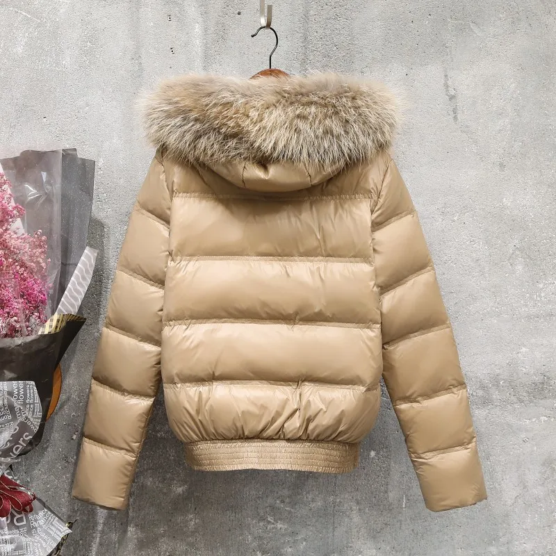 Женская короткая куртка с капюшоном, теплая парка на белом утином пуху с воротником из натурального меха, зимняя куртка, 2021