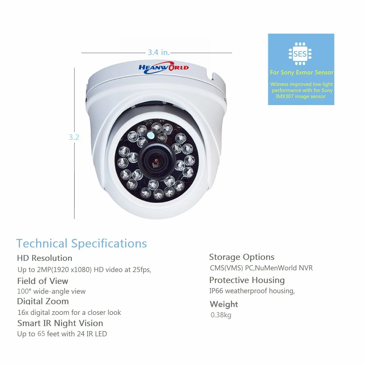 Спецификация камеры POEРазрешение: HD 1920x1080Тип датчика: 1/1/2 дюйма, 2 Мп, CMOS-датчик SONY IMX307Минимальная освещенность: Цвет: 0,0001 люкс; Ч/Б: 0,0001 люксПитание: может питаться от постоянного тока 12 В, 2 А и POEОбъектив: 2,8 мм 5 Мп HD объективИК светодиодный: 24 ИК светодиодный да, функция IR-CUT,Сжатие видео: основной/высокий профиль H.265Угол обзора: 100 градусовПогодостойкость: уровень IP66Частота кадров: до 25 кадров в секундуСтандарт POE: 802.3af, 48 ВСлот для SD-карты: НетРабочая температура: -20 °C ~ 60 °C