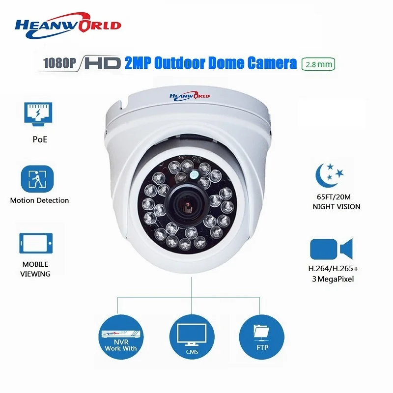 2,8 мм H.265 + 1080P POE IP-камера 2MP купольная IP-камера видеонаблюдения для POE NVR системы Водонепроницаемая наружная ночное видение IMX307