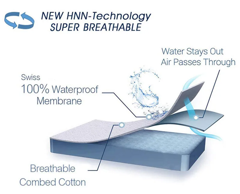 Это 80% хлопок-20% полиэстер махровая ткань смесь поверхности, которая обеспечивает комфорт и впитываемость. Он имеет специальную дышащую (полиуретановую) пленку на спине, которая позволяет теплу и влаге дышать, блокируя при этом бесmirch, жидкость, бактерии и другие гипервосприимчивые материалы от матраса кровати.