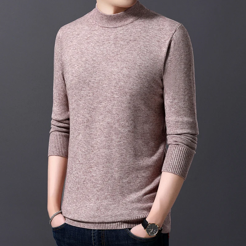 Мужской трикотажный свитер с круглым вырезом, приталенный силуэт