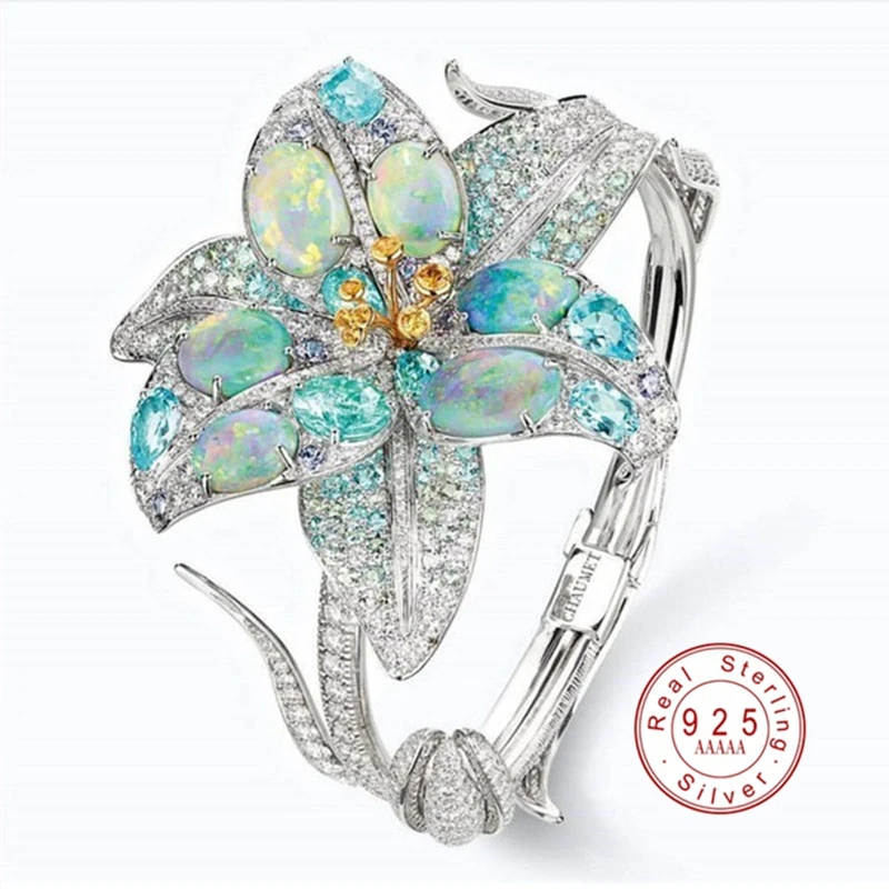 Кольцо женское из серебра 2021 пробы, с большим цветком и кристаллом, многоцветное, обручальное, 925
