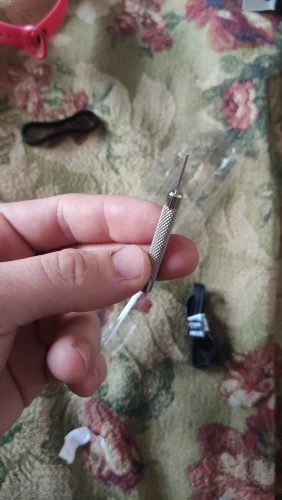 Приобрел два, себе и другу. Шли где-то 10 дней. Причем отправлены были IML, но пришли на почту. Подарочная упаковка. Внутри сам браслет, весь в слюде, чтоб не поцарапался, три резинки для фиксации капсулы, инструкция и минишило, для изменения размера. Советую использовать молоток или пассатижи, для удара по шилу, для изменения размера браслета. Лучше на плоской поверхности с небольшим углублением, типа как у меня на фото, старая разделочная доска с мелкими дырочками от сверления. Убрал по одному сегменту, сразных сторон от защёлки.