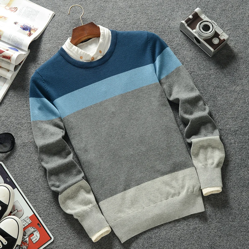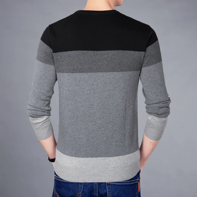 Мужской облегающий свитер в полоску, повседневный трикотажный пулов...