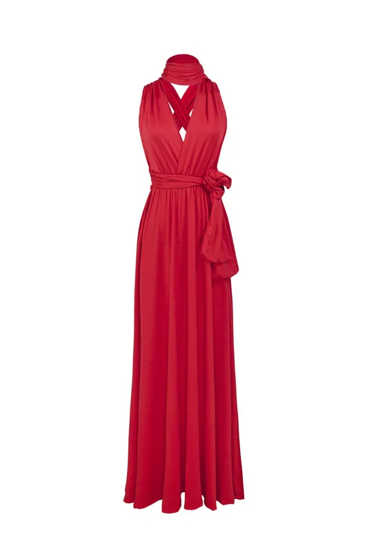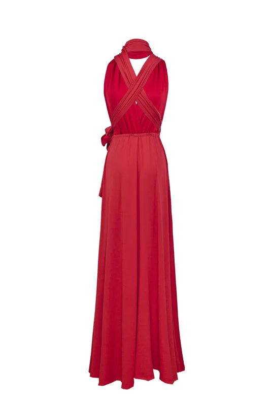Женское платье-трансформер с запахом, красное Бандажное длинное пла...