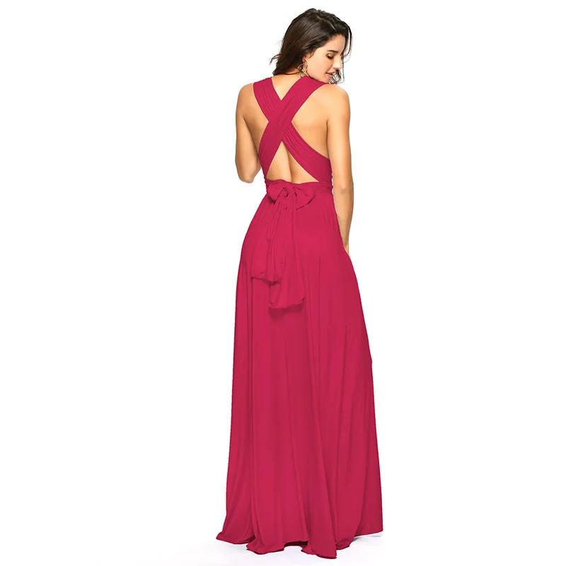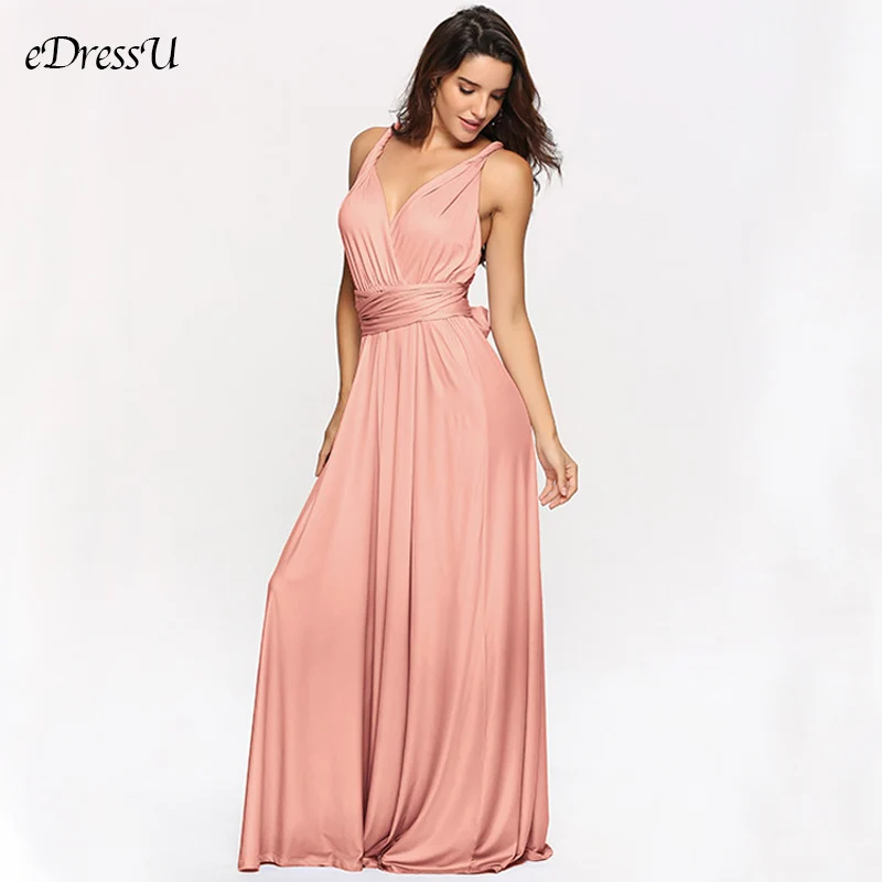Женское вечернее платье-трансформер, розовое длинное ТРАПЕЦИЕВИДНОЕ ПЛАТЬЕ С V-образным вырезом, элегантное официальное платье