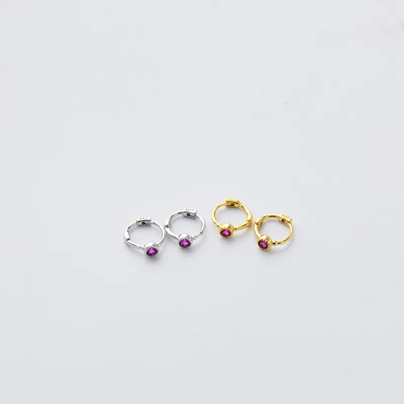 Серьги-кольца женские из серебра 925 пробы с цирконом