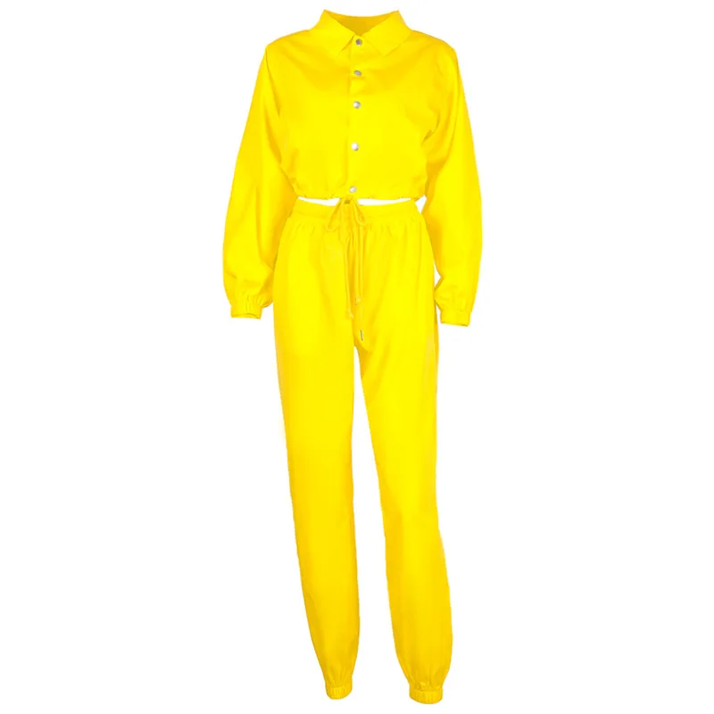 Крутая женская короткая куртка на пуговицах с отложным воротником, укороченные куртки, шаровары на шнуровке, женские спортивные штаны, повседневный комплект одежды, мини-бюстгальтер, 2019