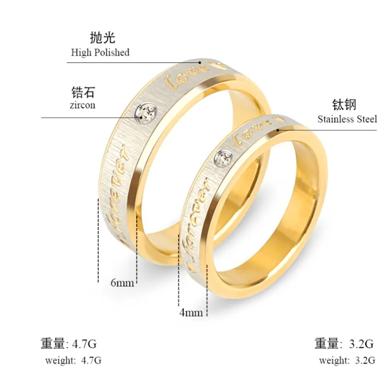 Золото из нержавеющей стали с гравировкой Forever Love Пара Кольца ...