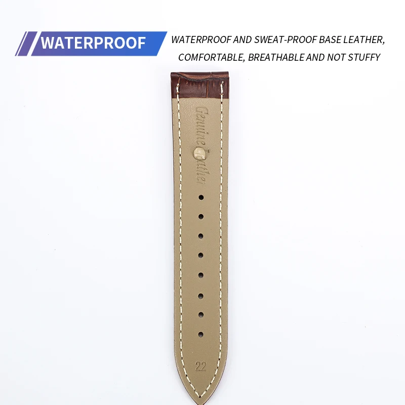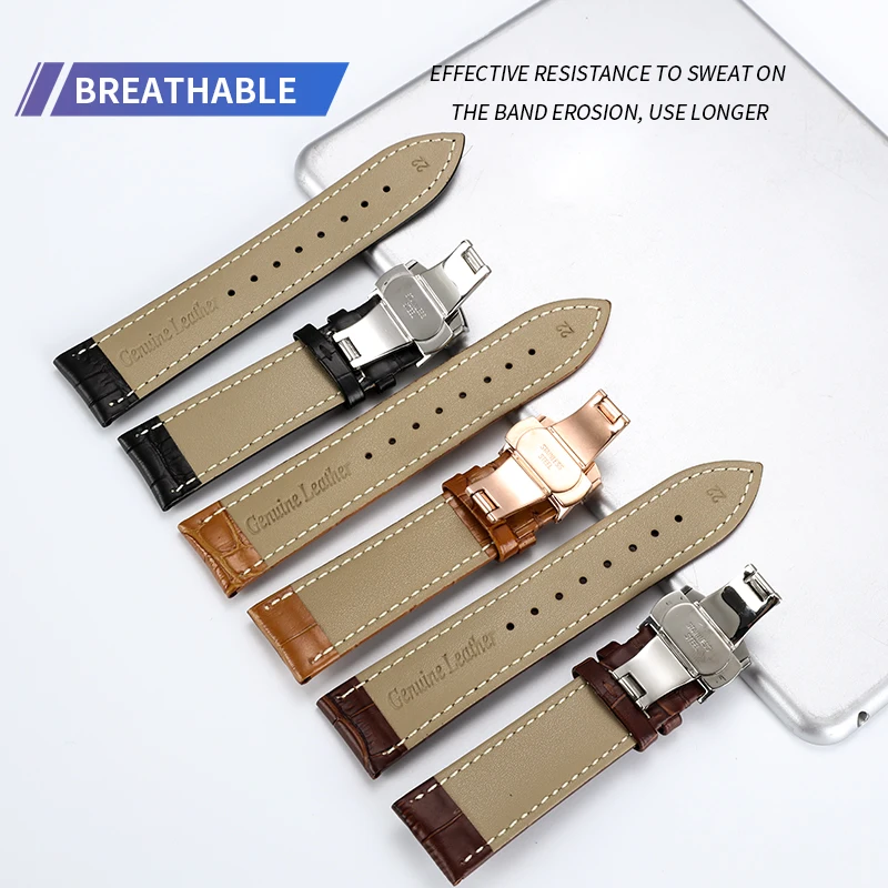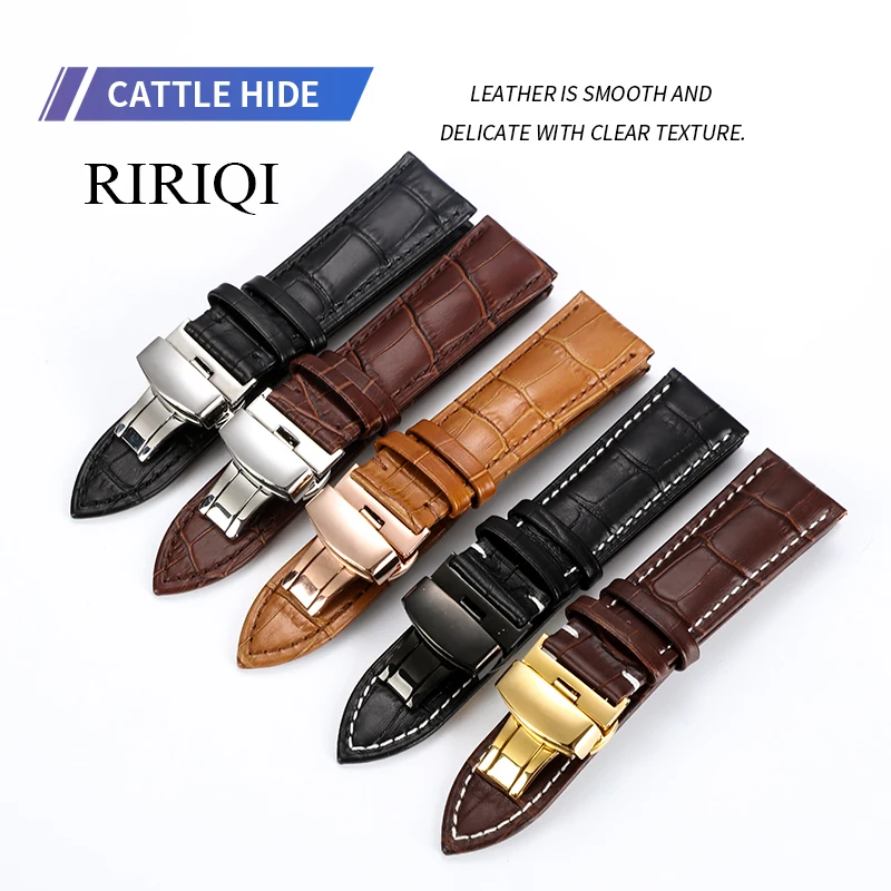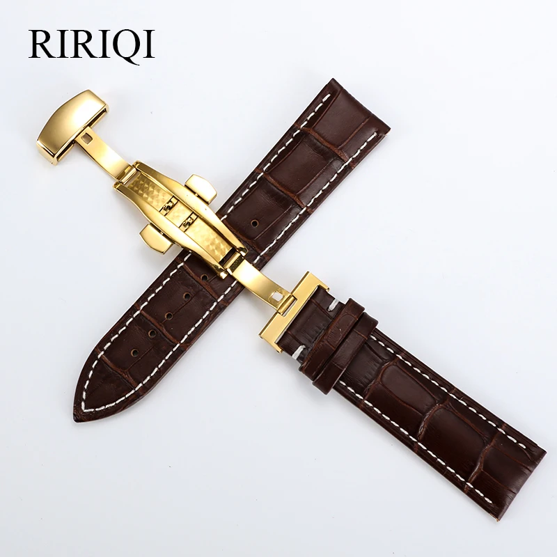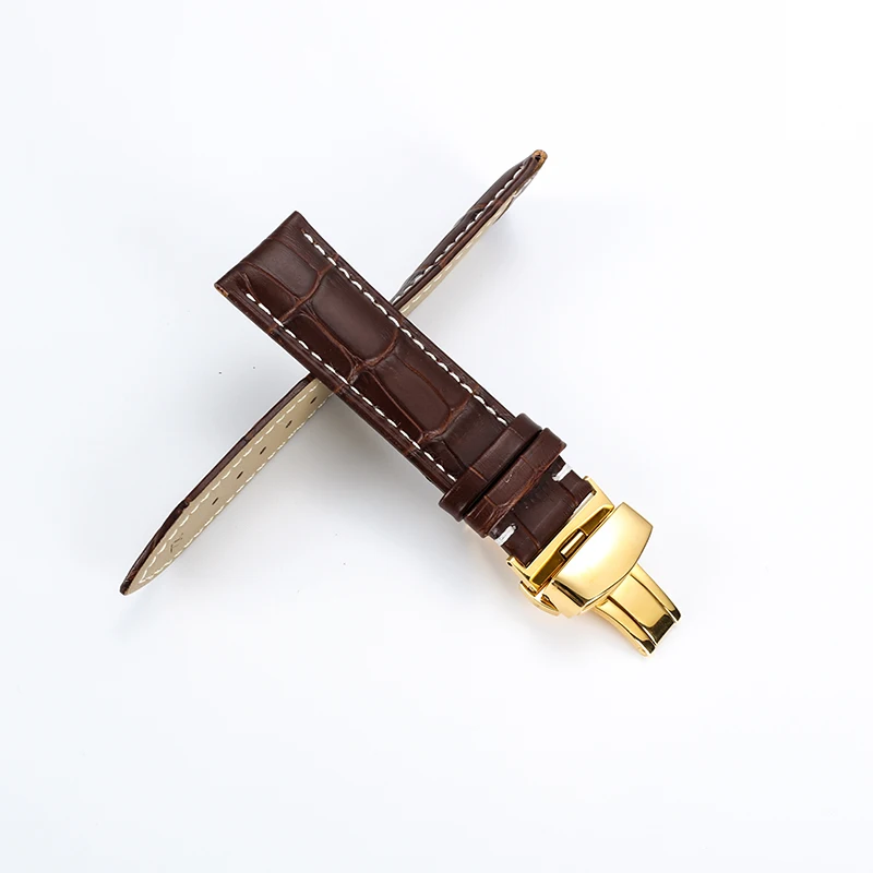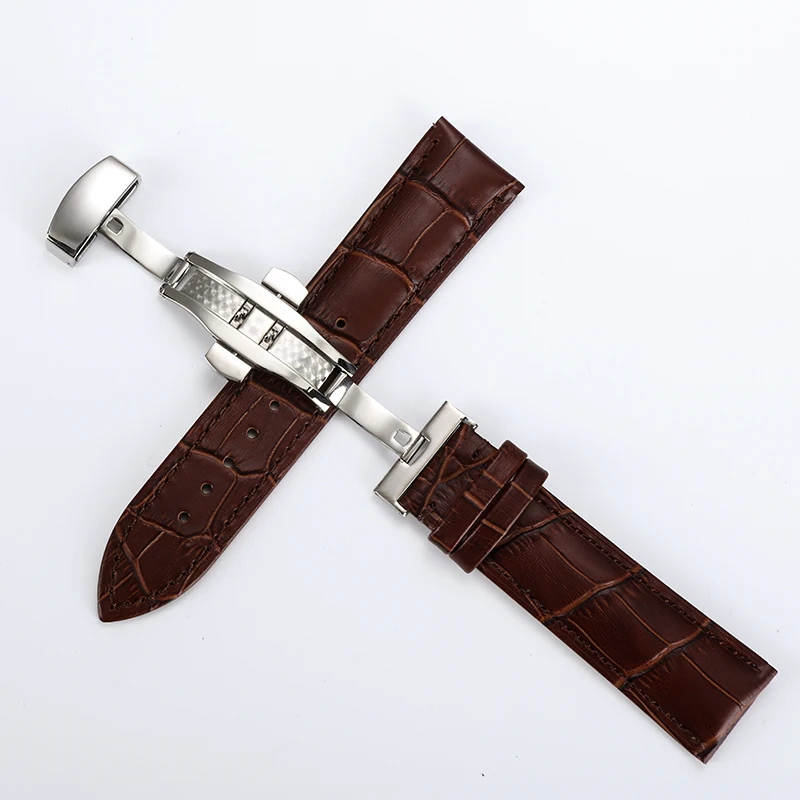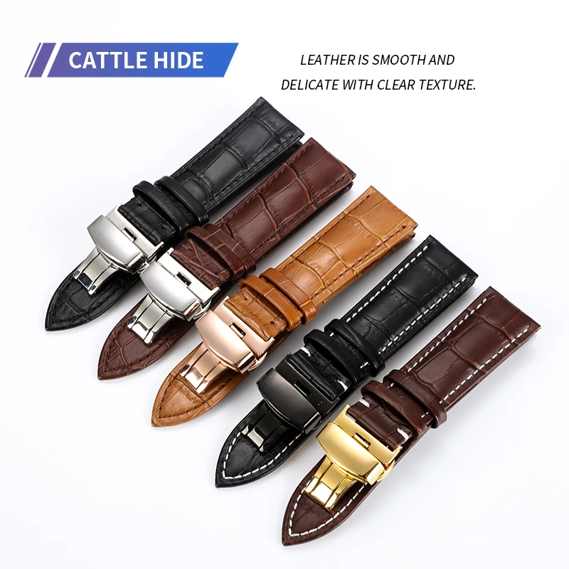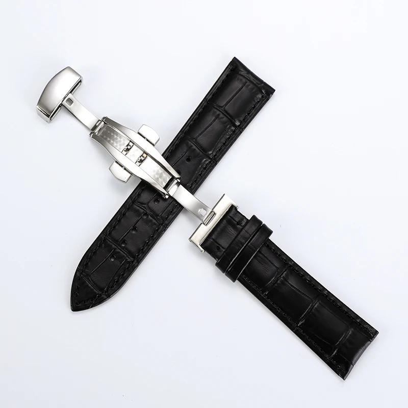 Ремешок из натуральной кожи для часов, универсальный стальной браслет с застежкой-бабочкой разных цветов, чёрный белый, леска 16 18 19 20 21 22 мм