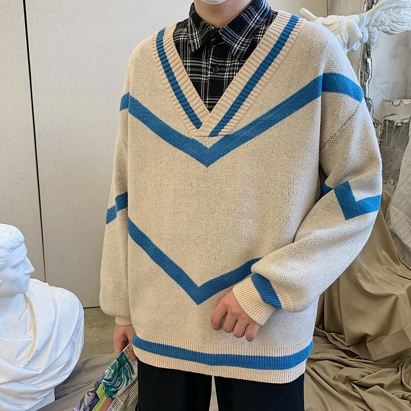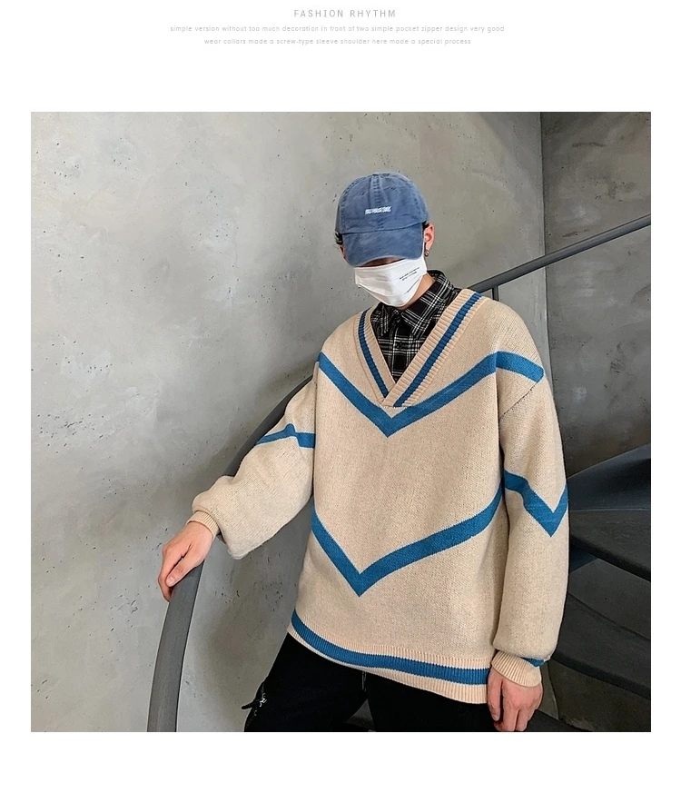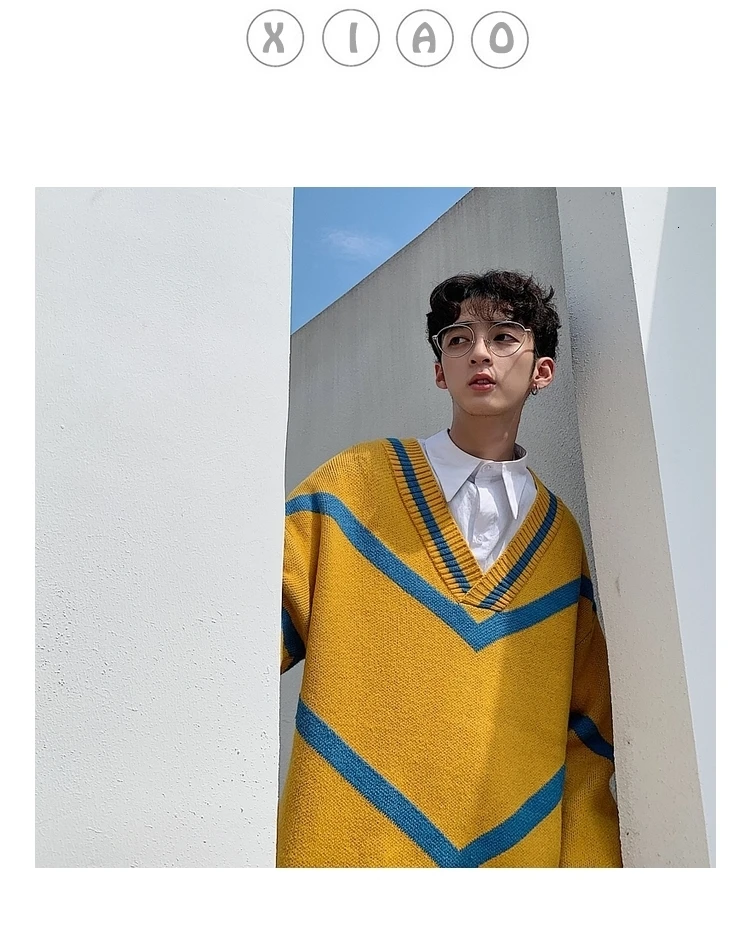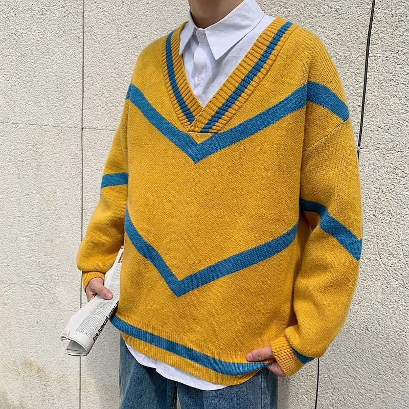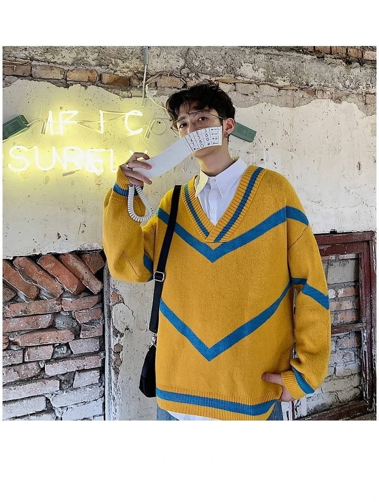 Новинка Зима 2019 корейская версия цветной Флокированный мужской свободный пуловер с V-образным вырезом вязаный студенческий Повседневный свитер
