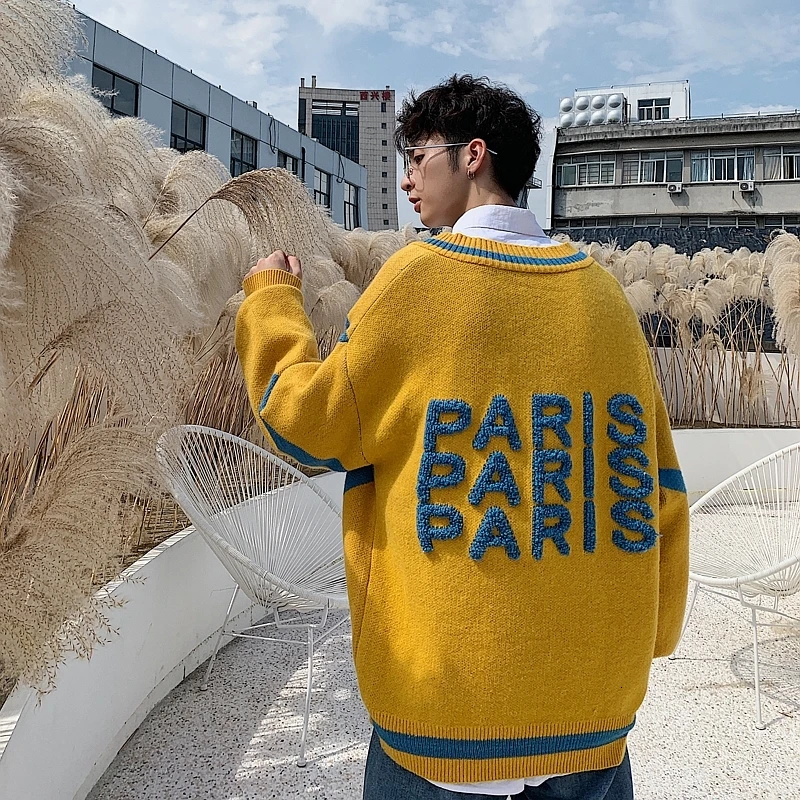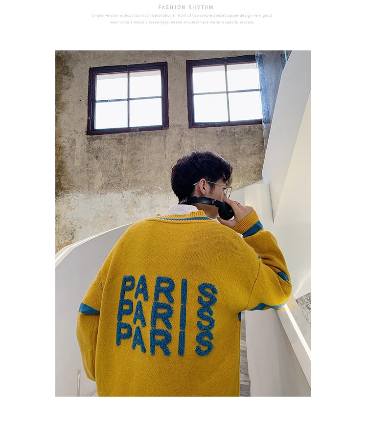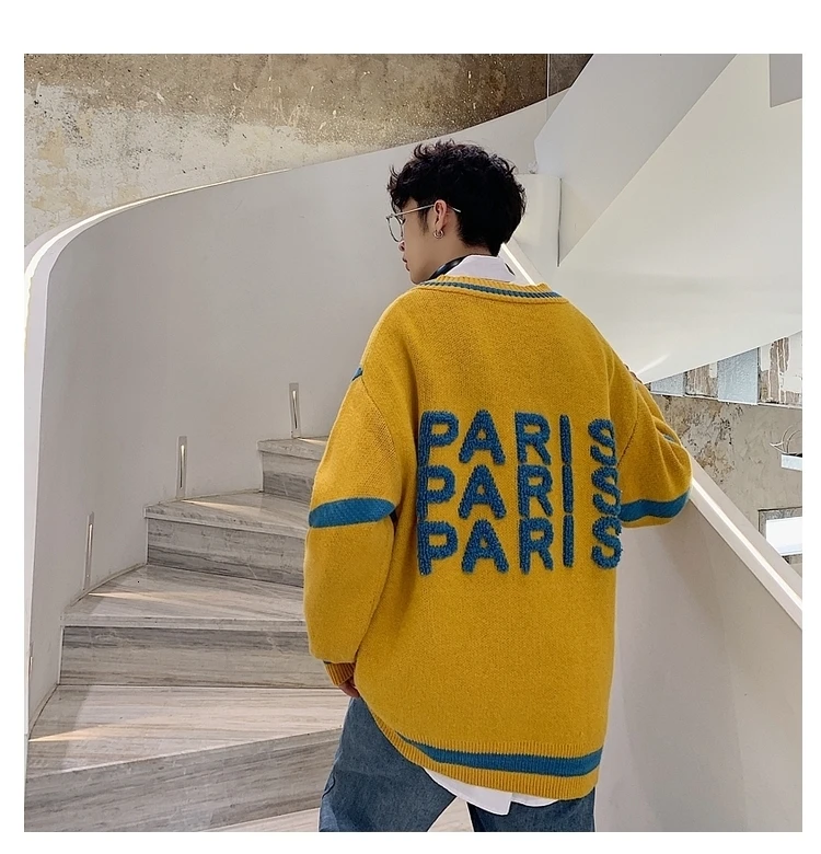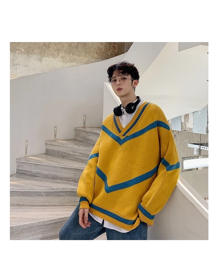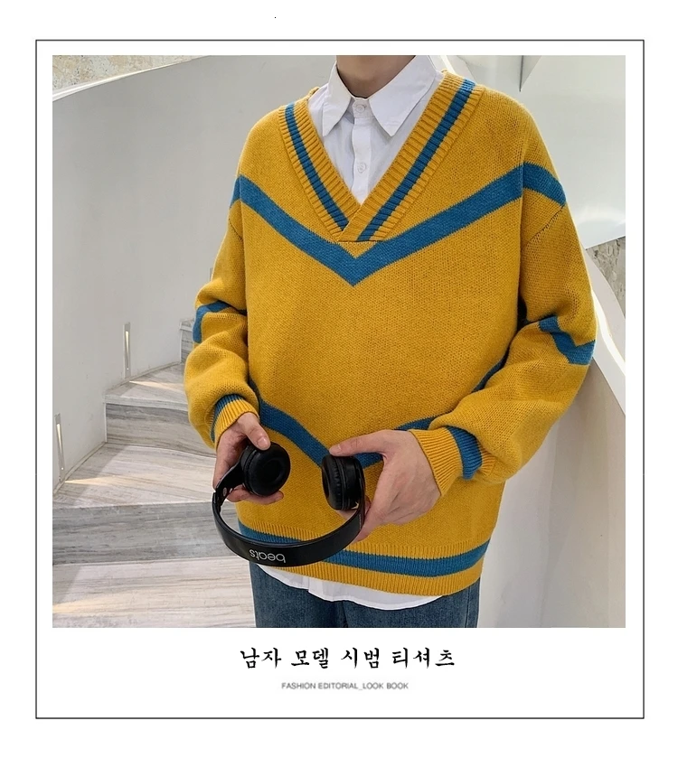 Новинка Зима 2019 корейская версия цветной Флокированный мужской свободный пуловер с V-образным вырезом вязаный студенческий Повседневный свитер