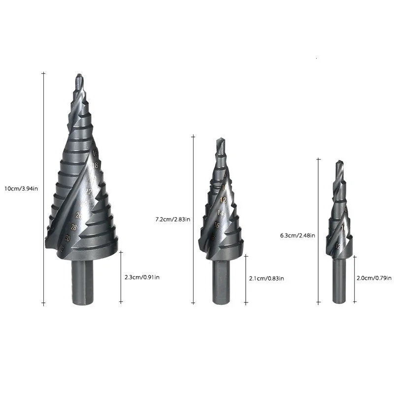 Набор ступенчатых Сверл из быстрорежущей стали и кобальта, комплект из 3 насадок для металла, для работ по дереву