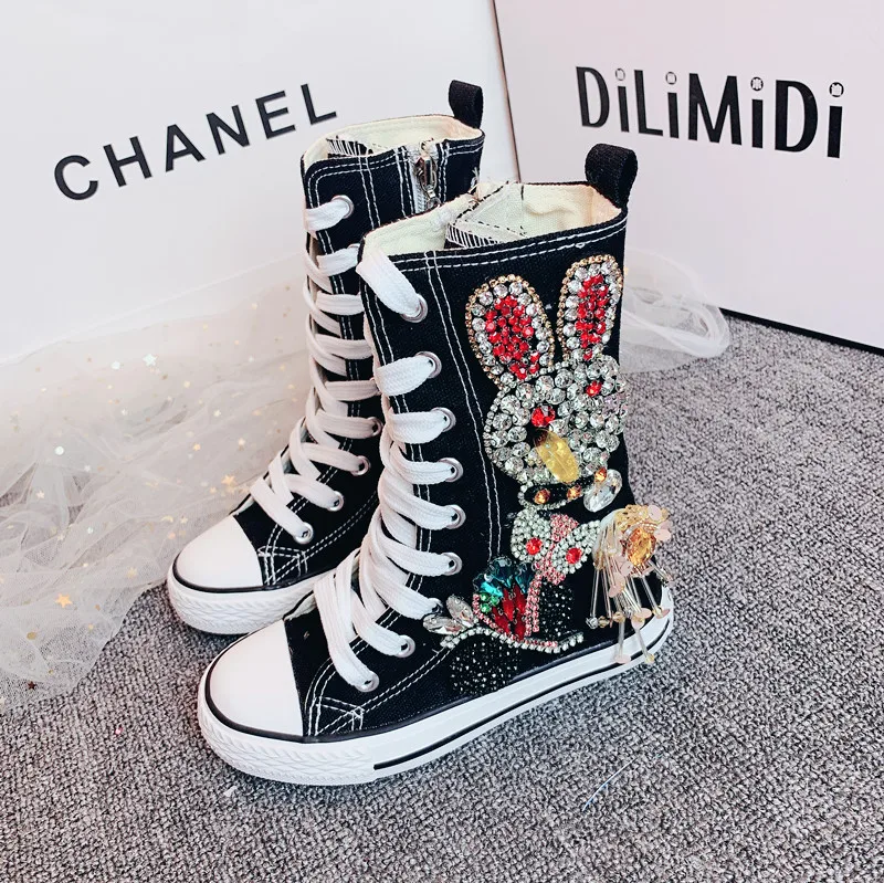 Кроссовки детские, Осенние, черные, спортивные, стразы